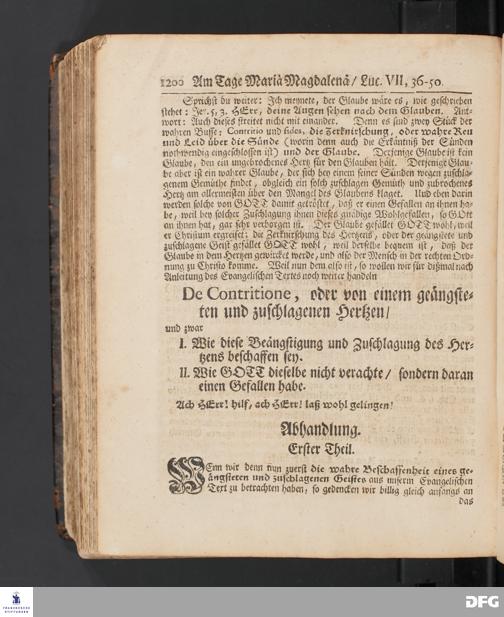 Das der Sünden wegen geängstete und zuschlagene Hertz. [Predigt] Am Tage Mariä Magdalenä....