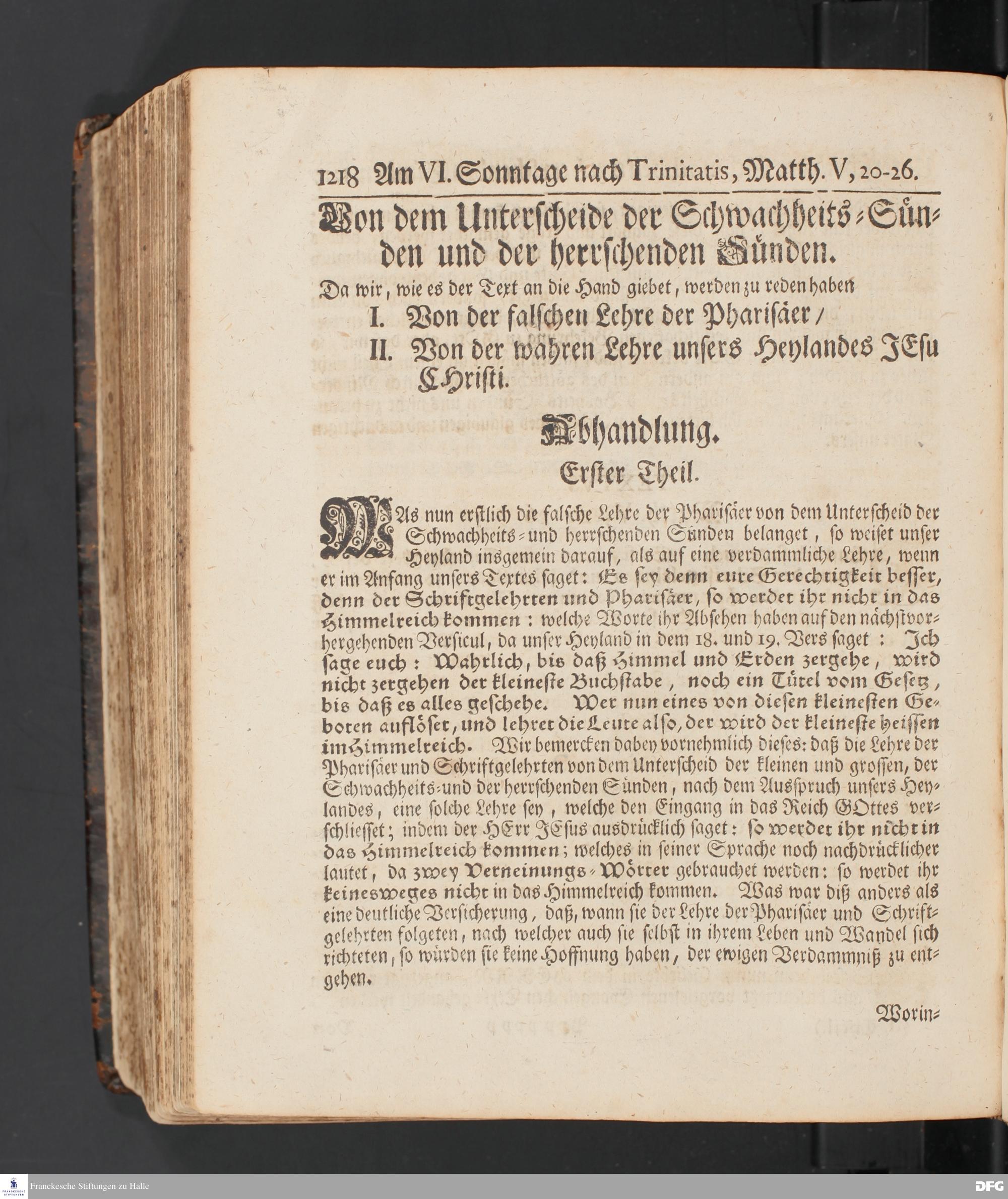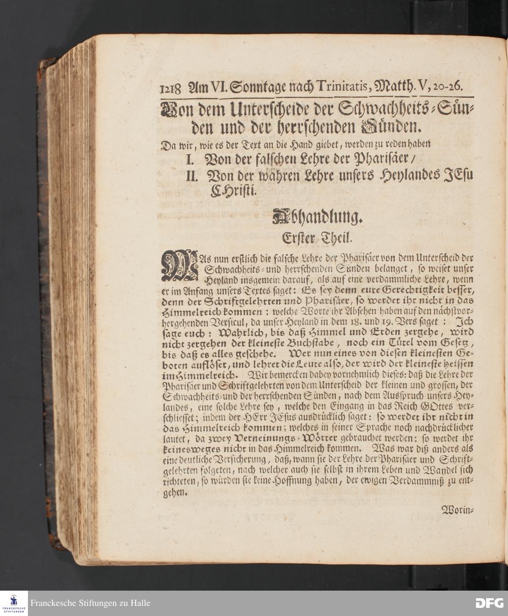 Von dem Unterscheid der Schwachheits=Sünden und der herrschenden Sünden. [Predigt] Am VI. Sonntage nach Trinitatis.