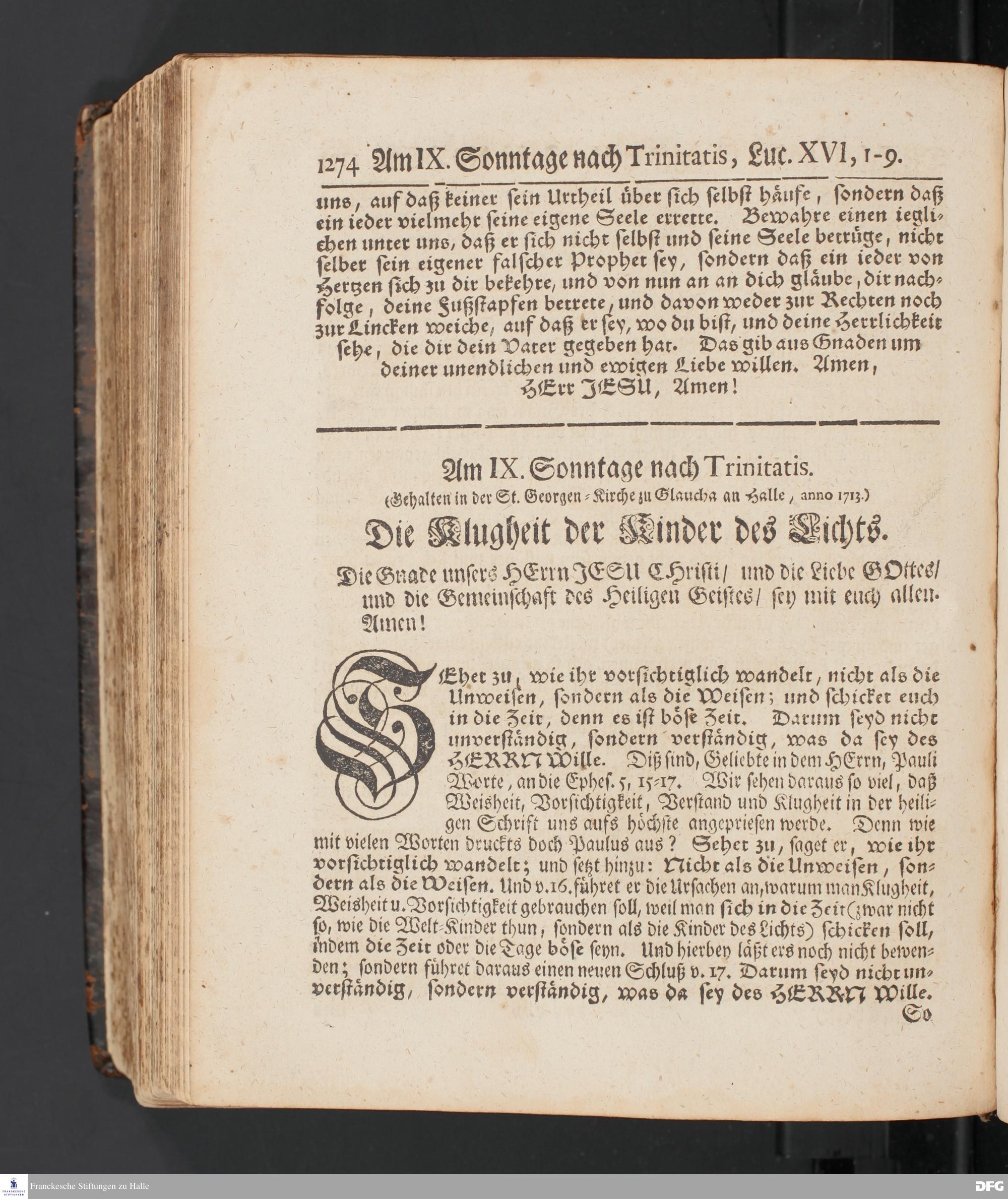 (Gehalten in der St. Georgen=Kirche zu Glaucha an Halle, anno 1713.)