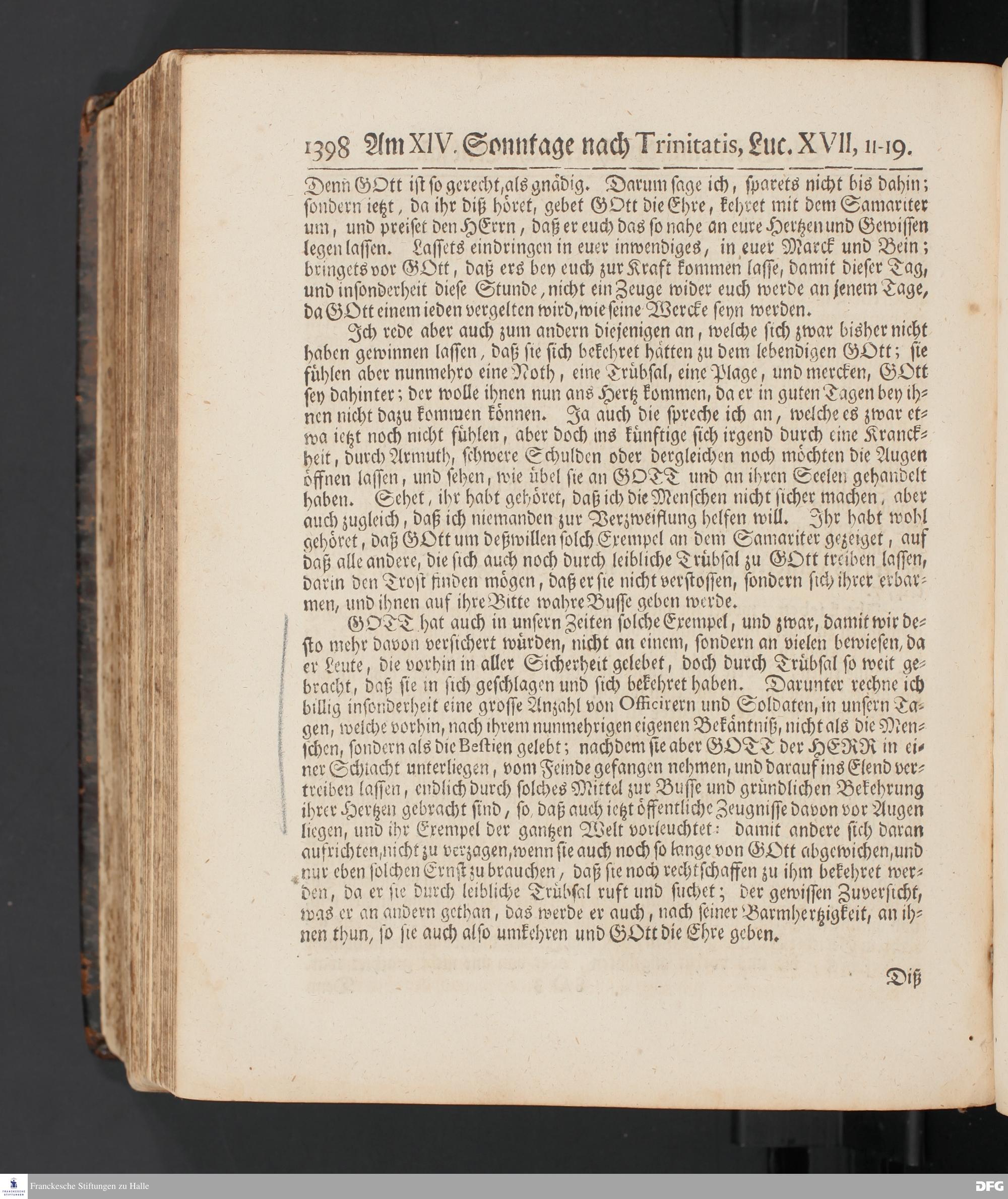 Die Bekehrung durch leibliche Trübsal; Wie solche zwar öfters scheinbar / aber selten rechtschaffen sey. [Predigt] Am XIV. Sonntage nach Trinitatis.