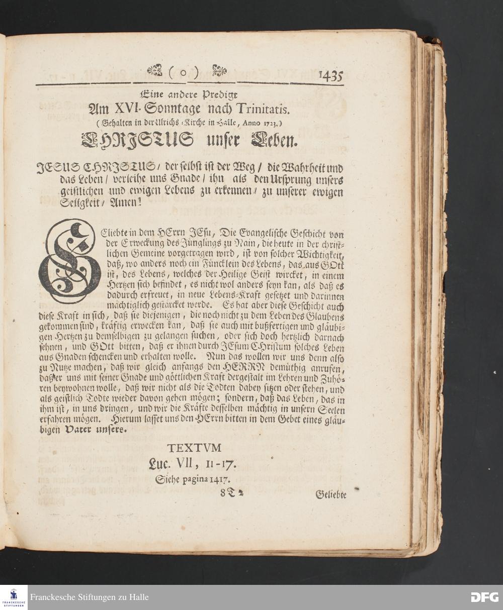 (Gehalten in der Ulrichs-Kirche in Halle, Anno 1723.)