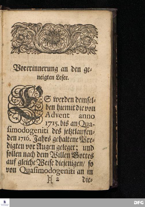 August Hermann Franckens / S.Theol.Prof.& Past. zu S.Ulrich / und des Gymnasii Scholarchæ Kurtze Sonn= und Fest=Tags=Predigten / Darinnen Vornemlich zum wahren / lebendigen / Kraft=vollen und in guten Früchten sich beweisenden Glauben / die nöthige Aufweckung und Anweisung gegeben wird.([Erster und] Anderer Theil.) Halle / gedruckt u.verlegt im Wäysen=Hause MDCCXVI-MCCXVII.