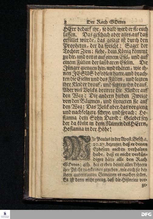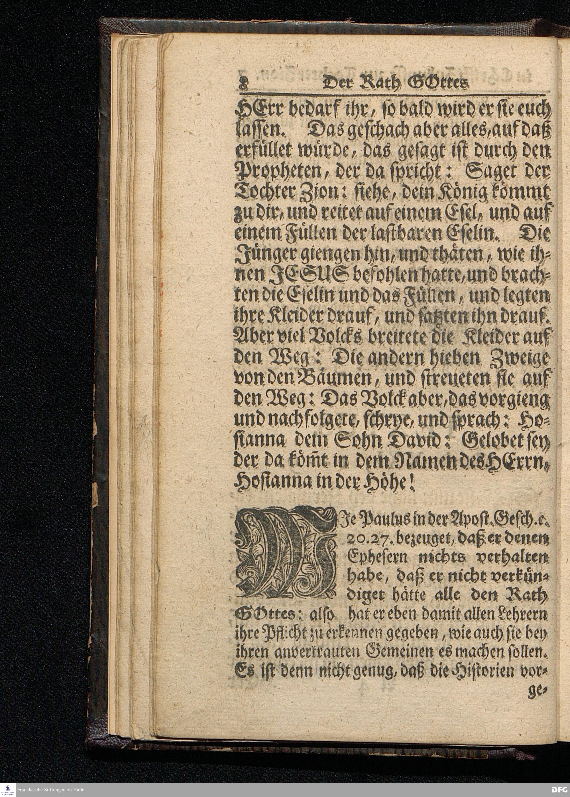 Der Rath GOttes in CHristi Zukunfft zur Tochter Zion / Nach dem Aeussern und Innern betrachtet / Und Aus dem Evangelischen Text Matth.XXI, 1-9. Am Iten Sonntag des Advents In der St.Ulrichs=Kirche in Halle, vorgestellet Von August Hermann Francken / S.Theolog.Prof.& Past.zu S.Ulrich, und des Gymnasii Scholarcha. HALLE, Gedruckt und zu finden im Wäysen=Hause. Anno 1716.