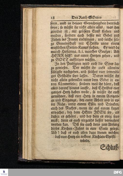 Der Rath GOttes in CHristi Zukunfft zur Tochter Zion / Nach dem Aeussern und Innern betrachtet / Und Aus dem Evangelischen Text Matth.XXI, 1-9. Am Iten Sonntag des Advents In der St.Ulrichs=Kirche in Halle, vorgestellet Von August Hermann Francken / S.Theolog.Prof.& Past.zu S.Ulrich, und des Gymnasii Scholarcha. HALLE, Gedruckt und zu finden im Wäysen=Hause. Anno 1716.