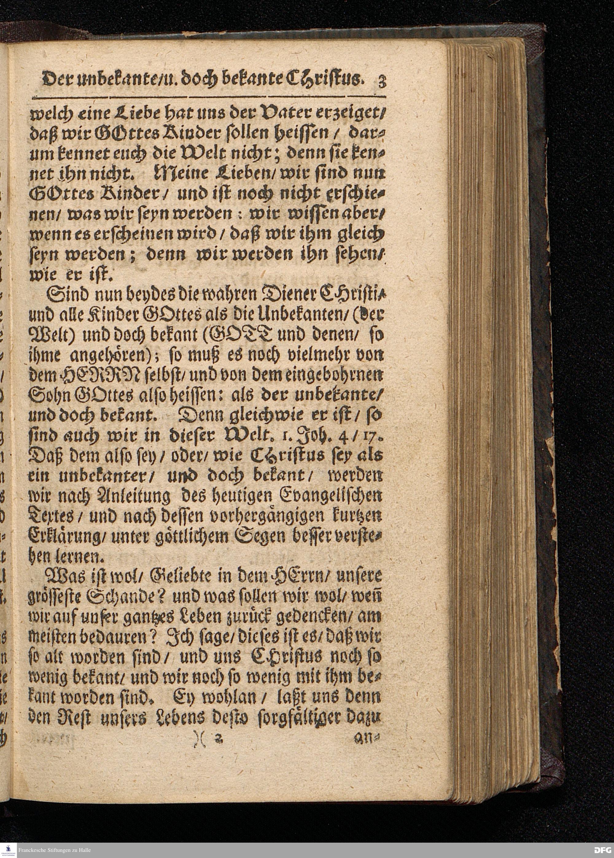 Der unbekante / und doch bekante Christus / Aus dem Evangelischen Text Joh.I, 19-28. Am IV.Sonntag des Advents 1715. In der St.Ulrichs=Kirchen in Halle / vorgestellet von A[ugust] H[ermann] F[rancke]. [Kopftitel]