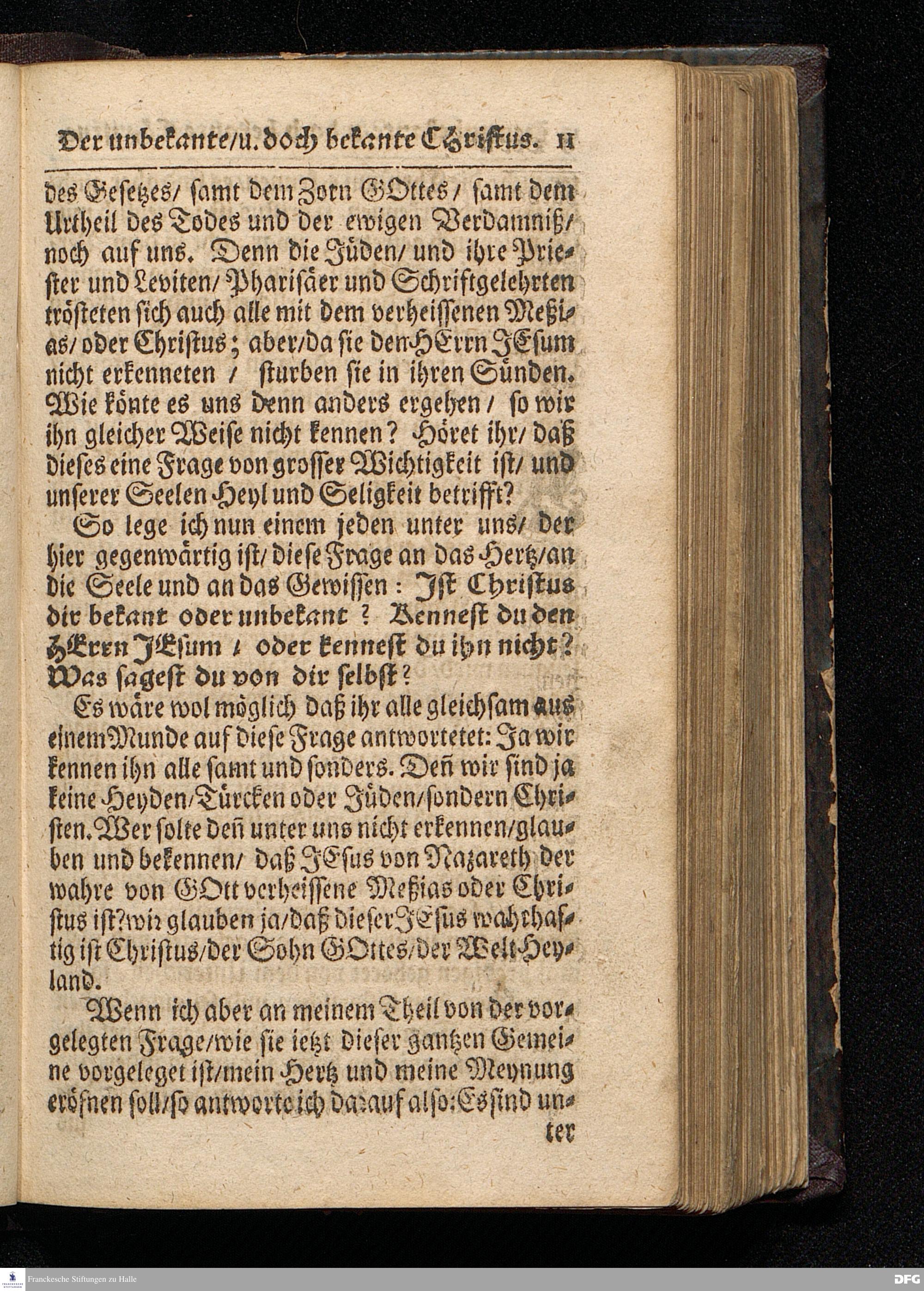 Der unbekante / und doch bekante Christus / Aus dem Evangelischen Text Joh.I, 19-28. Am IV.Sonntag des Advents 1715. In der St.Ulrichs=Kirchen in Halle / vorgestellet von A[ugust] H[ermann] F[rancke]. [Kopftitel]