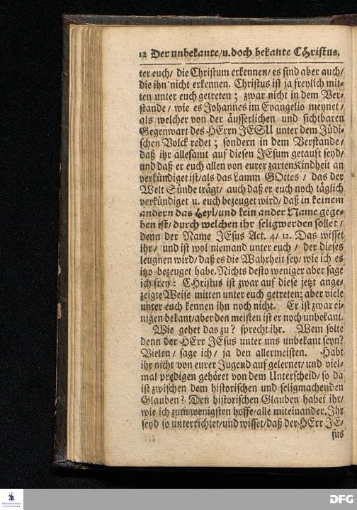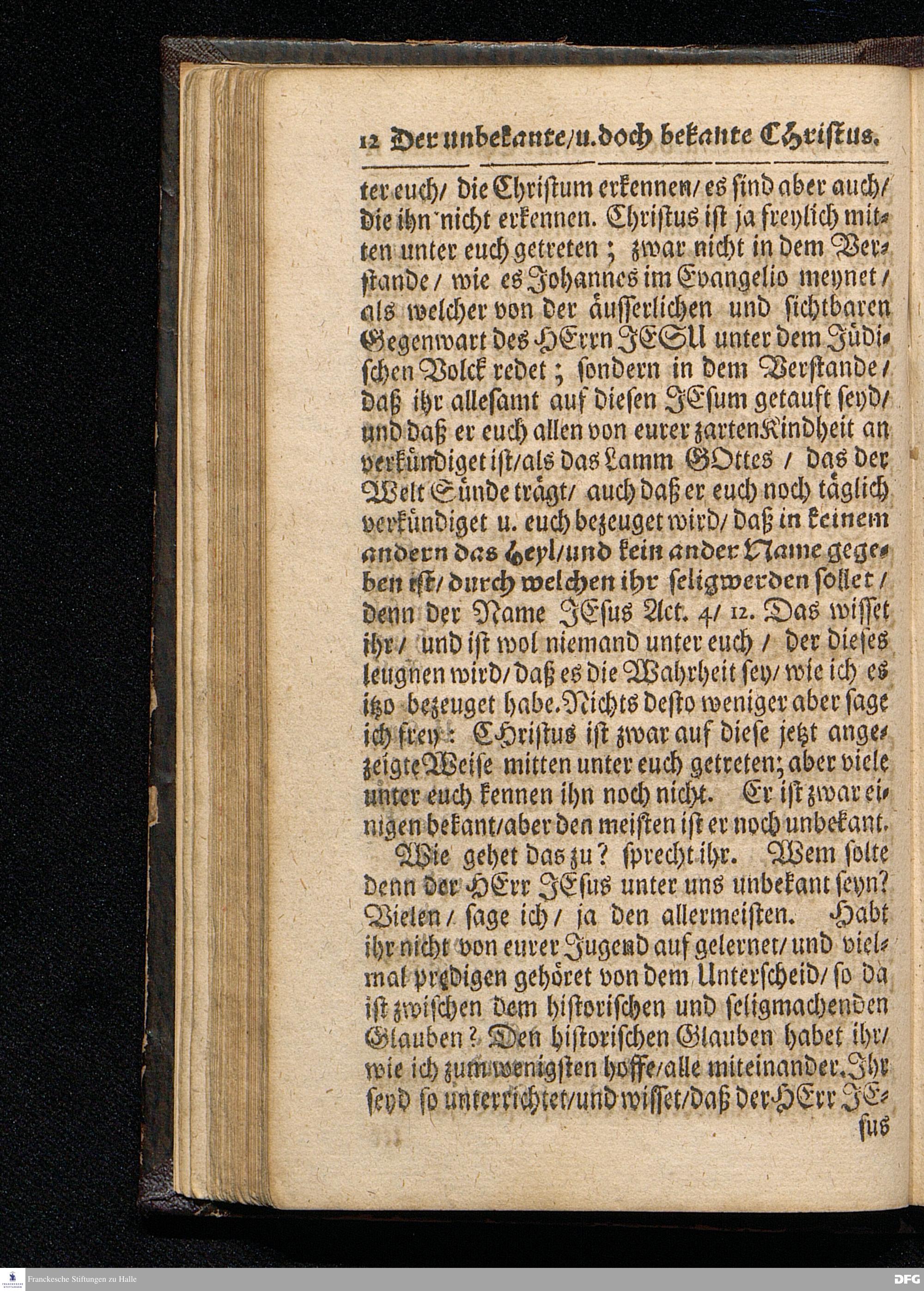 Der unbekante / und doch bekante Christus / Aus dem Evangelischen Text Joh.I, 19-28. Am IV.Sonntag des Advents 1715. In der St.Ulrichs=Kirchen in Halle / vorgestellet von A[ugust] H[ermann] F[rancke]. [Kopftitel]