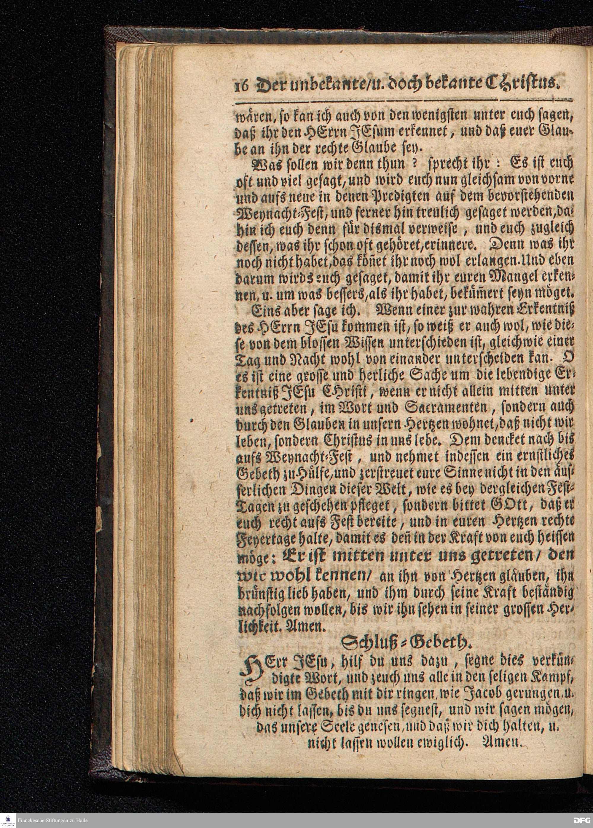 Der unbekante / und doch bekante Christus / Aus dem Evangelischen Text Joh.I, 19-28. Am IV.Sonntag des Advents 1715. In der St.Ulrichs=Kirchen in Halle / vorgestellet von A[ugust] H[ermann] F[rancke]. [Kopftitel]