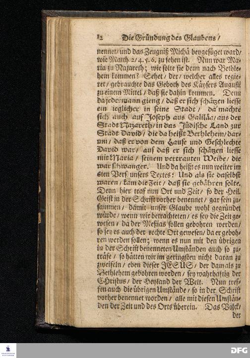 Die Gründung des Glaubens / Daß uns der Heyland Christus wahrhaftig gebohren ist / Am Iten Weynacht=Feyertage MDCCXV. aus dem Evangelio Luc.II, 1--14. In der S.Ulrichs=Kirche in Halle vorgestellet von August Hermann Francken / S.Theolog.Prof.& Past.zu S.Ulrich / und des Gymnasii Scholarcha. HALLE / Gedruckt und zu finden im Wäysen=Hause, Anno 1716.