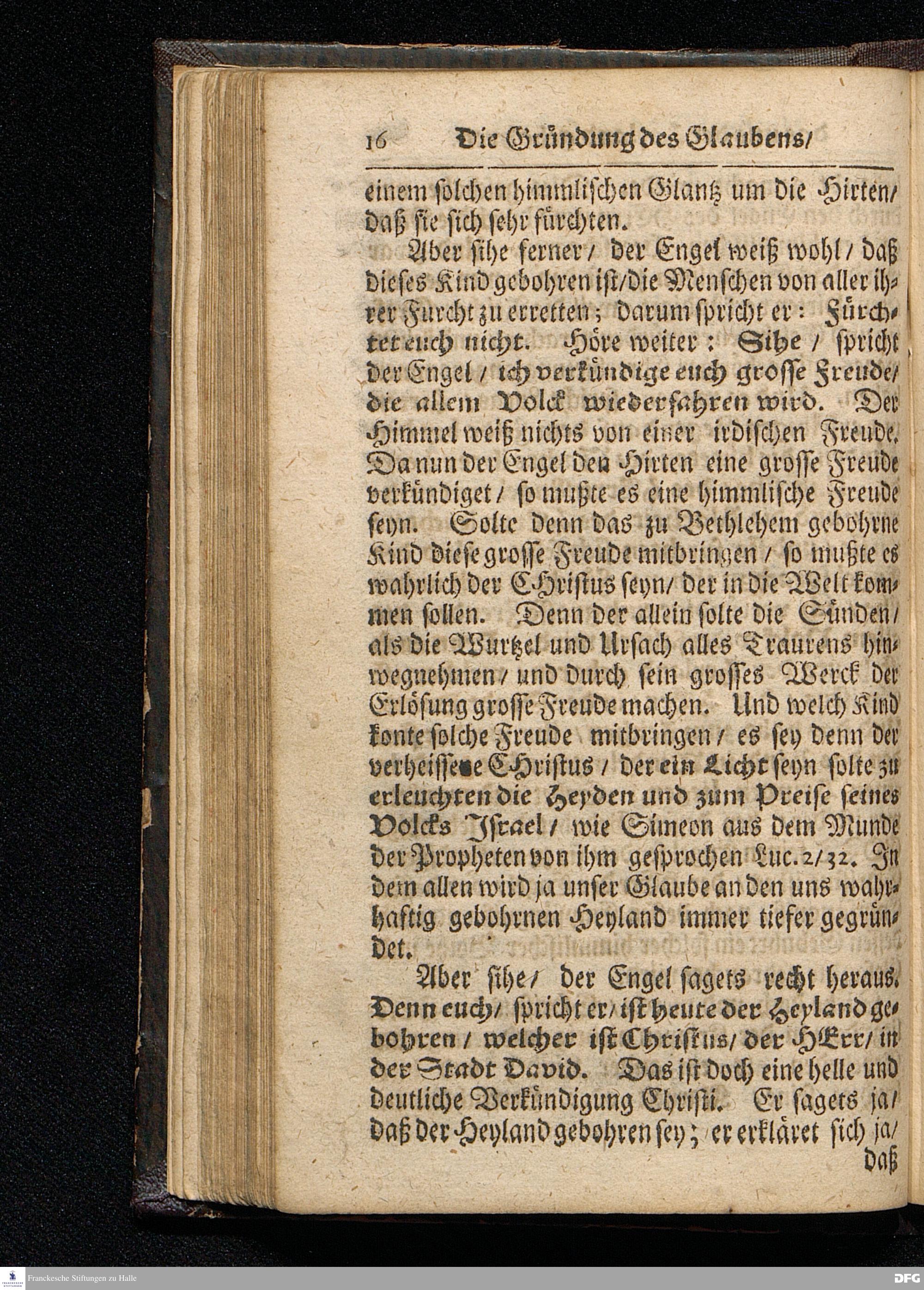 Die Gründung des Glaubens / Daß uns der Heyland Christus wahrhaftig gebohren ist / Am Iten Weynacht=Feyertage MDCCXV. aus dem Evangelio Luc.II, 1--14. In der S.Ulrichs=Kirche in Halle vorgestellet von August Hermann Francken / S.Theolog.Prof.& Past.zu S.Ulrich / und des Gymnasii Scholarcha. HALLE / Gedruckt und zu finden im Wäysen=Hause, Anno 1716.