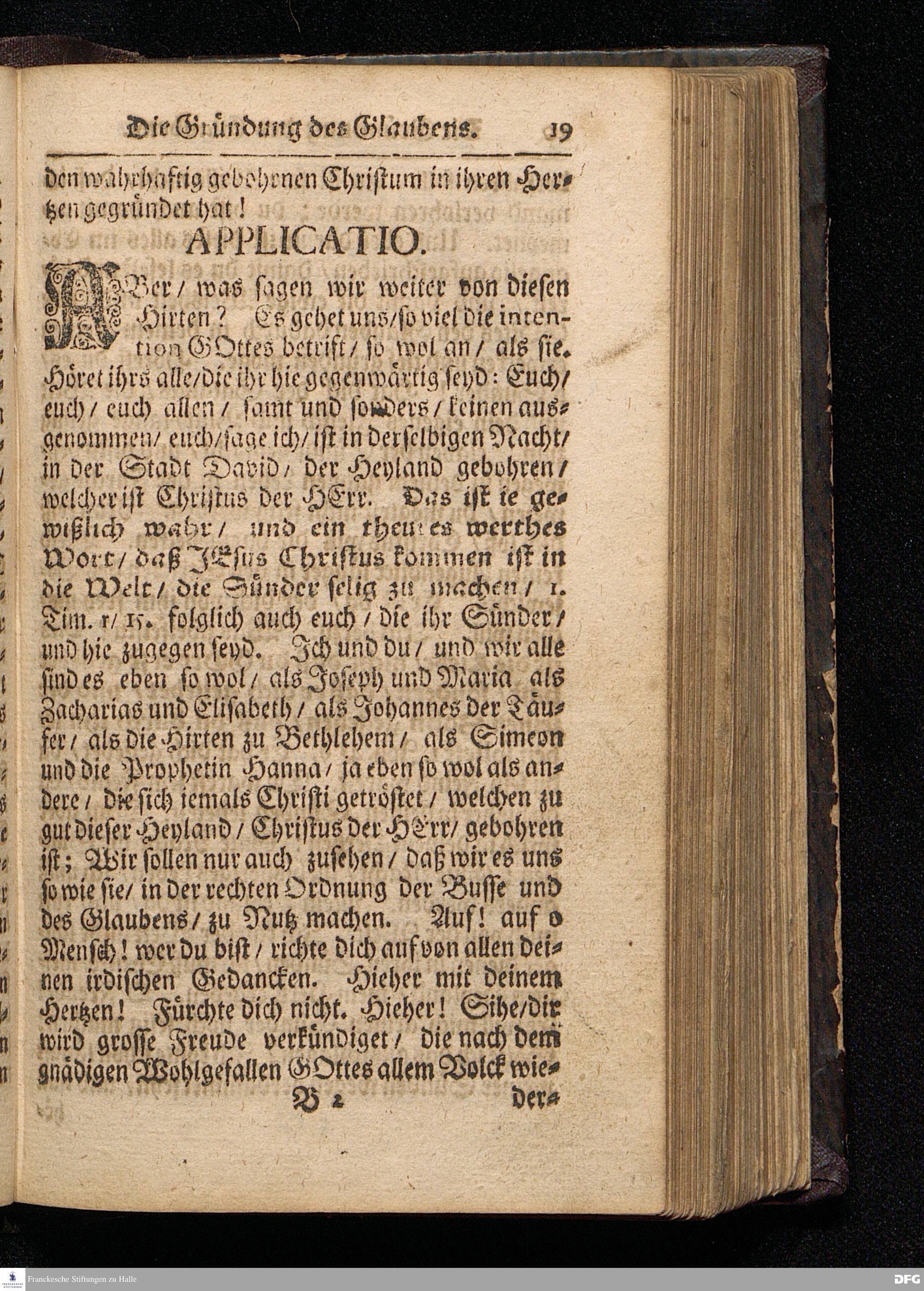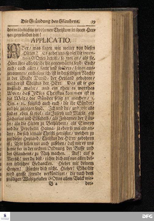 Die Gründung des Glaubens / Daß uns der Heyland Christus wahrhaftig gebohren ist / Am Iten Weynacht=Feyertage MDCCXV. aus dem Evangelio Luc.II, 1--14. In der S.Ulrichs=Kirche in Halle vorgestellet von August Hermann Francken / S.Theolog.Prof.& Past.zu S.Ulrich / und des Gymnasii Scholarcha. HALLE / Gedruckt und zu finden im Wäysen=Hause, Anno 1716.