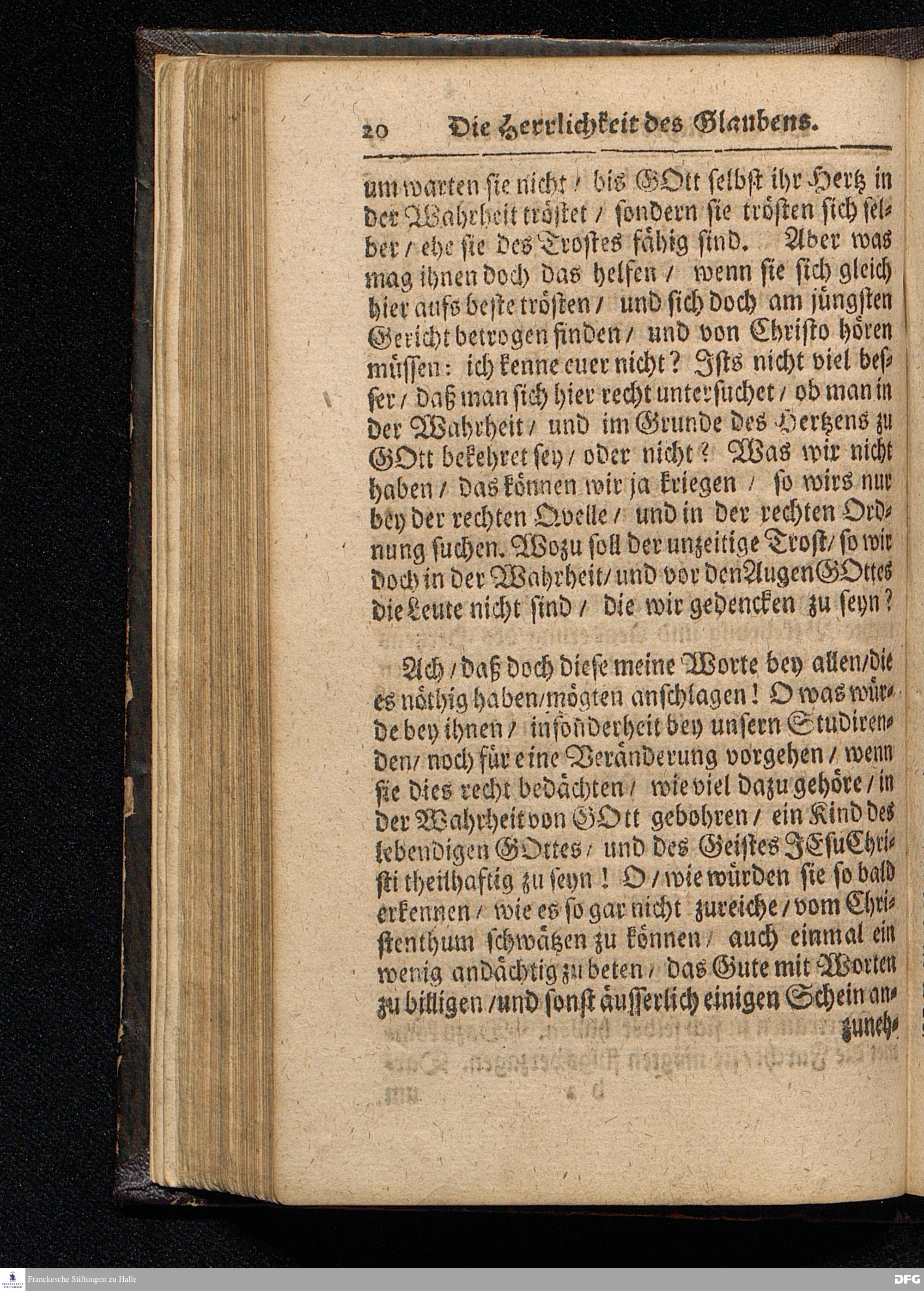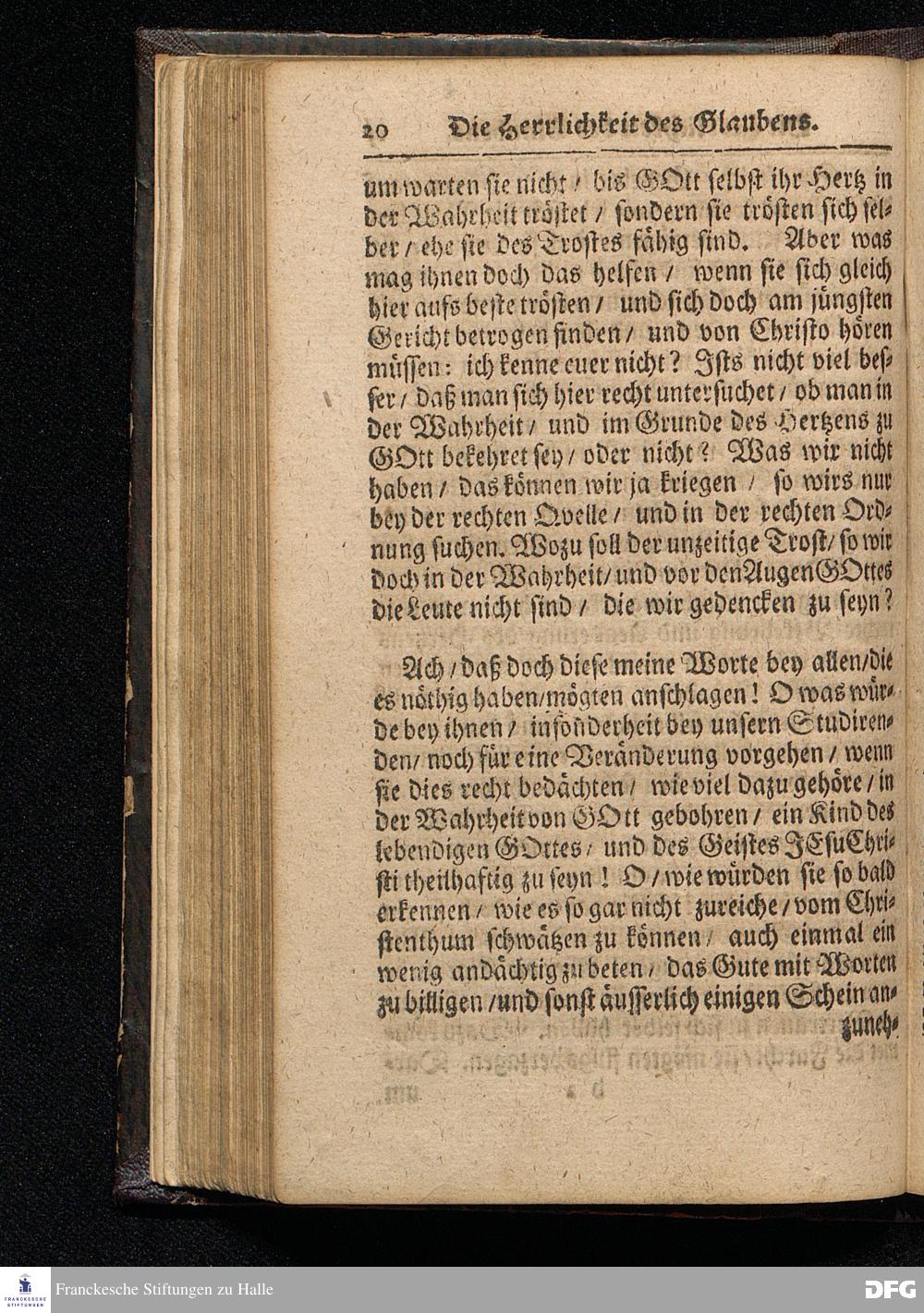 Die Herrlichkeit des Glaubens / Am 3ten Weyhnacht=Feyertage MDCCXV. In der Predigt aus dem Evangelio Ioh. I,1--14. In der Schul=Kirche zu Halle vorgestellet von August Hermann Francken / S.Theolog.Prof.& Past.zu S.Ulrich / und des Gymnasii Scholarcha. HALLE / Gedruckt und zu finden im Wäysen=Hause. Anno 1716.