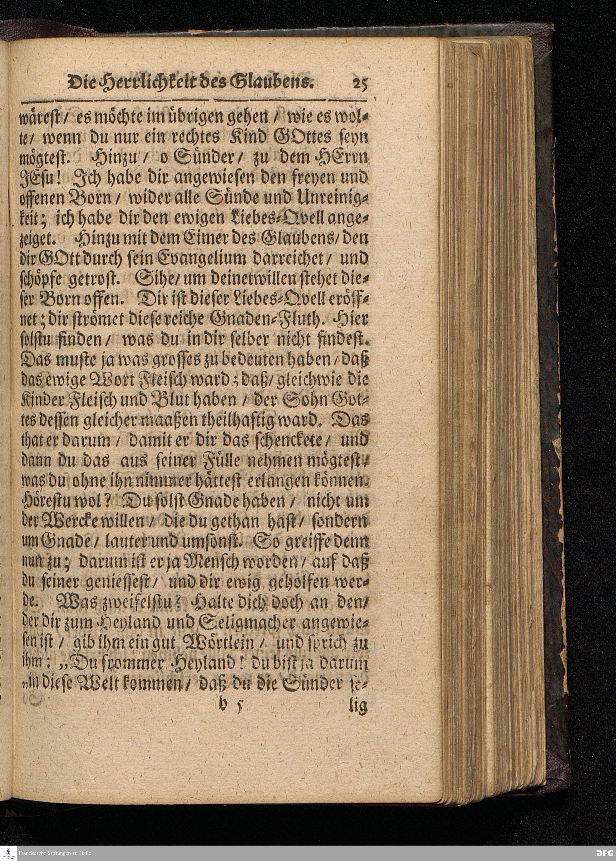 Die Herrlichkeit des Glaubens / Am 3ten Weyhnacht=Feyertage MDCCXV. In der Predigt aus dem Evangelio Ioh. I,1--14. In der Schul=Kirche zu Halle vorgestellet von August Hermann Francken / S.Theolog.Prof.& Past.zu S.Ulrich / und des Gymnasii Scholarcha. HALLE / Gedruckt und zu finden im Wäysen=Hause. Anno 1716.