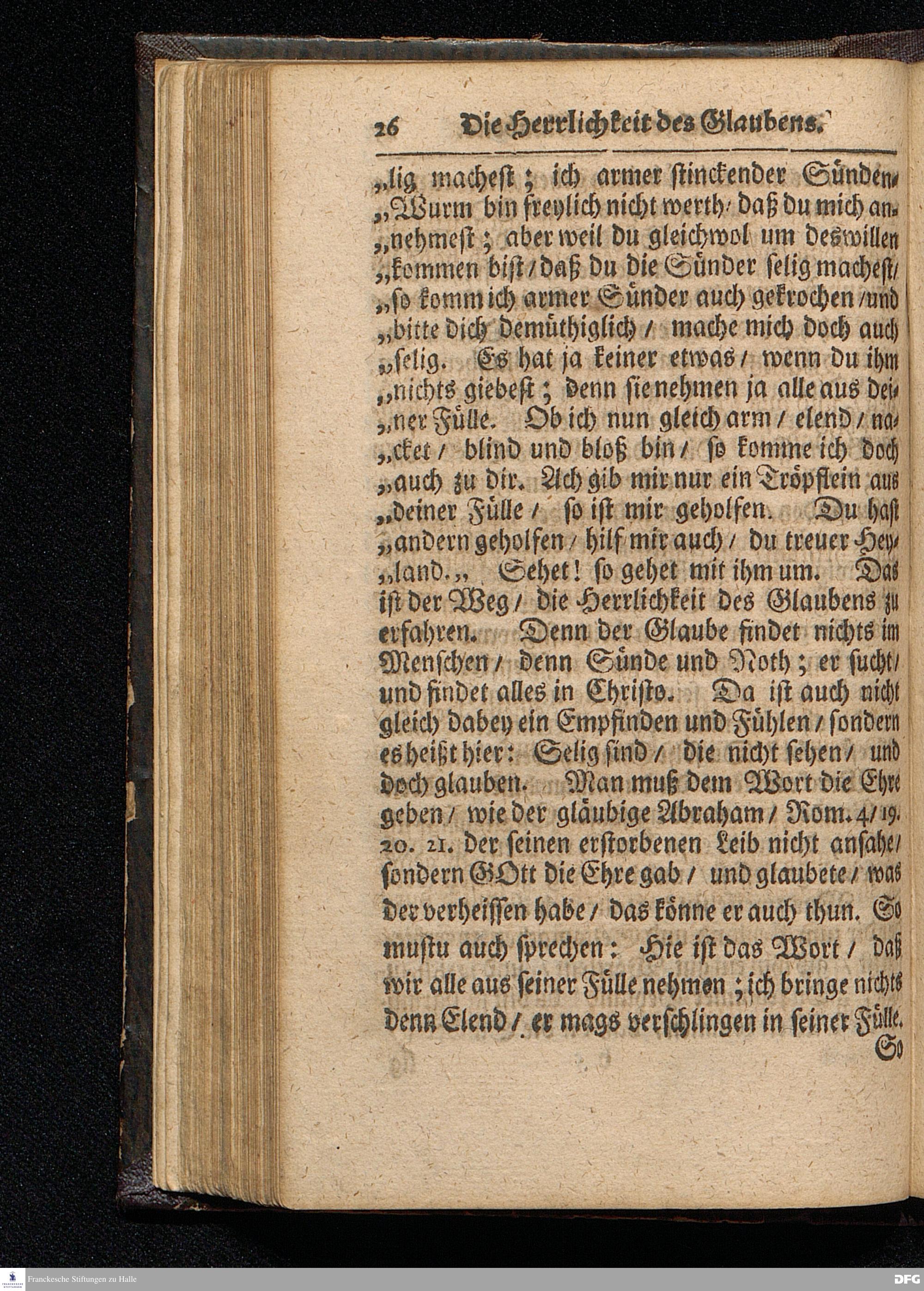 Die Herrlichkeit des Glaubens / Am 3ten Weyhnacht=Feyertage MDCCXV. In der Predigt aus dem Evangelio Ioh. I,1--14. In der Schul=Kirche zu Halle vorgestellet von August Hermann Francken / S.Theolog.Prof.& Past.zu S.Ulrich / und des Gymnasii Scholarcha. HALLE / Gedruckt und zu finden im Wäysen=Hause. Anno 1716.