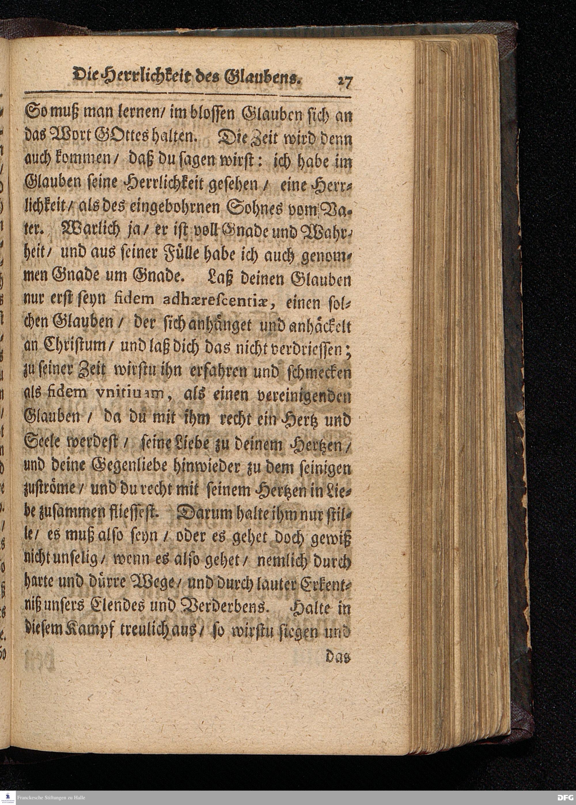 Die Herrlichkeit des Glaubens / Am 3ten Weyhnacht=Feyertage MDCCXV. In der Predigt aus dem Evangelio Ioh. I,1--14. In der Schul=Kirche zu Halle vorgestellet von August Hermann Francken / S.Theolog.Prof.& Past.zu S.Ulrich / und des Gymnasii Scholarcha. HALLE / Gedruckt und zu finden im Wäysen=Hause. Anno 1716.
