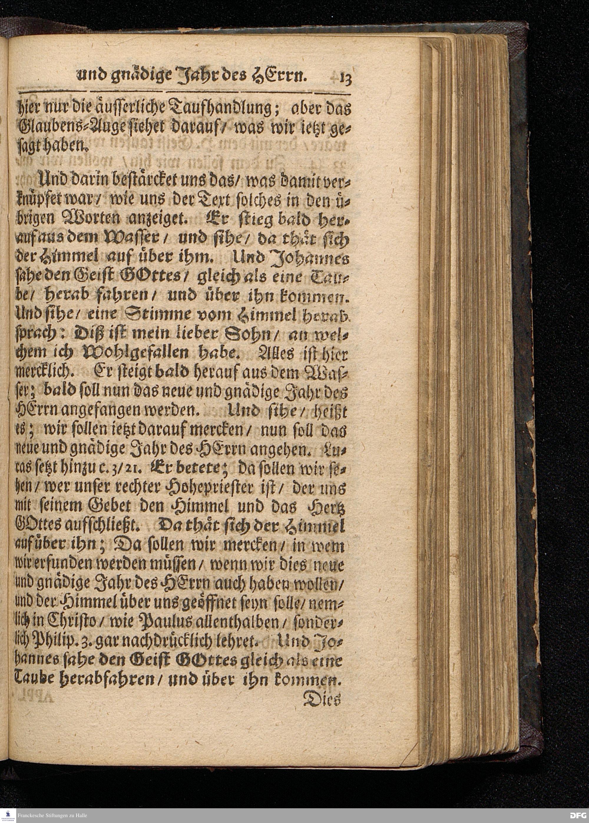 Das Neue und Gnädige Jahr des HErrn / Am Sonntag nach dem Neuen Jahr MDCCXVI. Aus dem Evangelio Matth.III, 13--17. In der St.Georgen=Kirche zu Glaucha an Halle vorgestellet von August Herman[n] Francken / S.Theolog.Prof.& Past.zu S.Ulrich / und des Gymansii Scholarcha. HALLE / Gedruckt und zu finden im Wäysen=Hause.