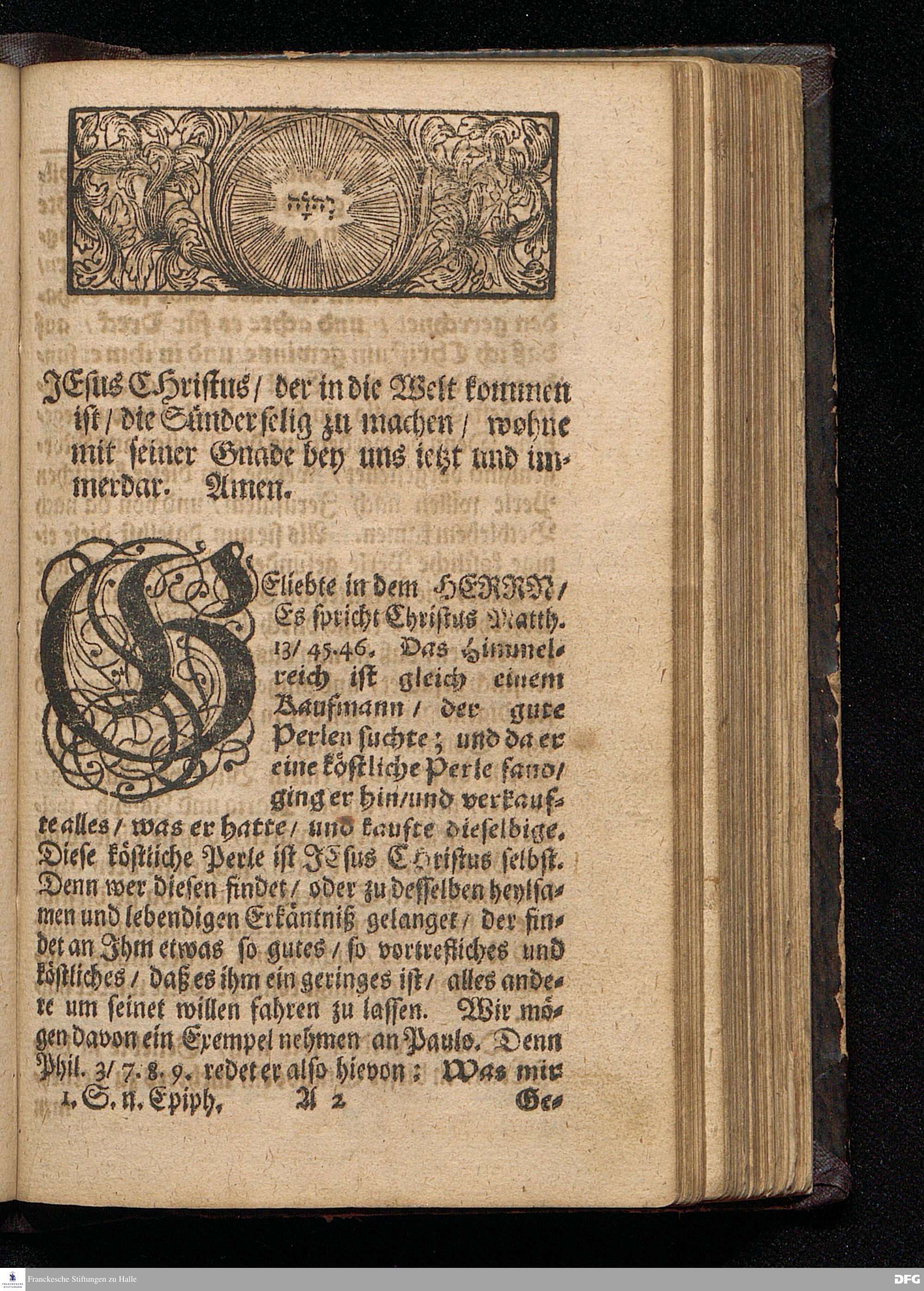 Das Suchen und Finden Christi / Am 1sten Sonntag nach Epiphanias MDCCXII. Aus dem Evangelio Luc.II, 41-52. In der Schul=Kirchen zu Halle / vorgestellet von August Herman[n] Francken / S.Theolog.Prof.& Past.zu S.Ulrich / und des Gymnasii Scholarcha. HALLE / Gedruckt und zu finden im Wäysen=Hause. Anno 1716.