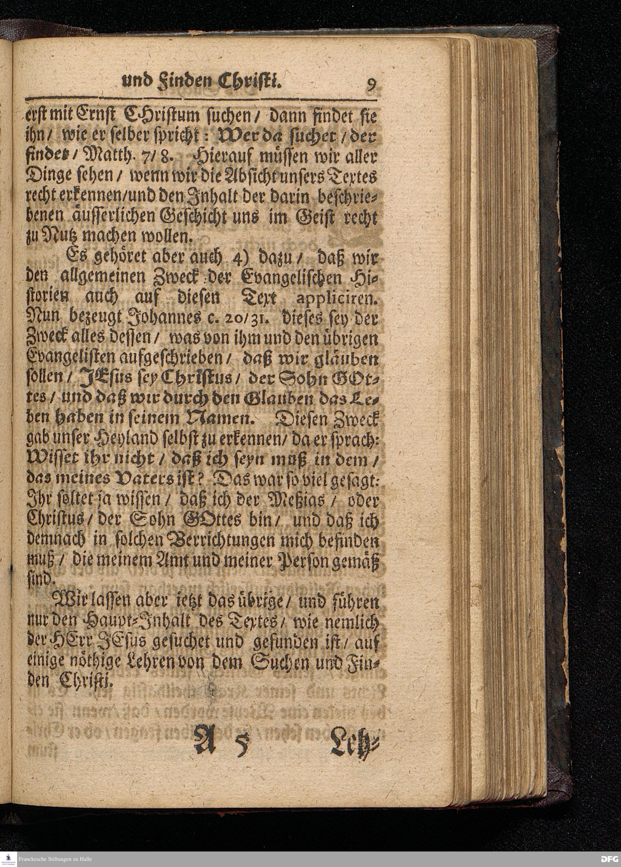 Das Suchen und Finden Christi / Am 1sten Sonntag nach Epiphanias MDCCXII. Aus dem Evangelio Luc.II, 41-52. In der Schul=Kirchen zu Halle / vorgestellet von August Herman[n] Francken / S.Theolog.Prof.& Past.zu S.Ulrich / und des Gymnasii Scholarcha. HALLE / Gedruckt und zu finden im Wäysen=Hause. Anno 1716.