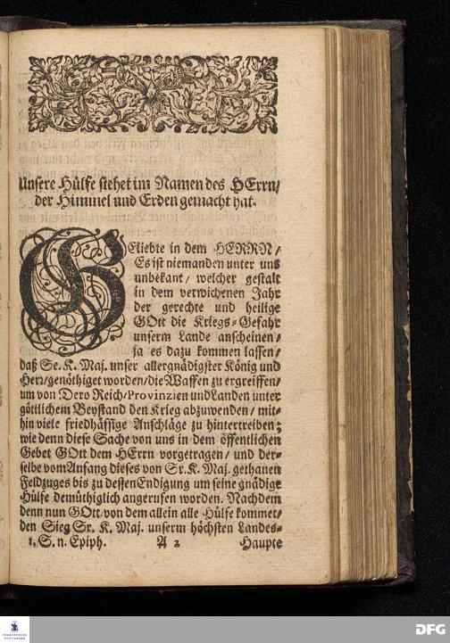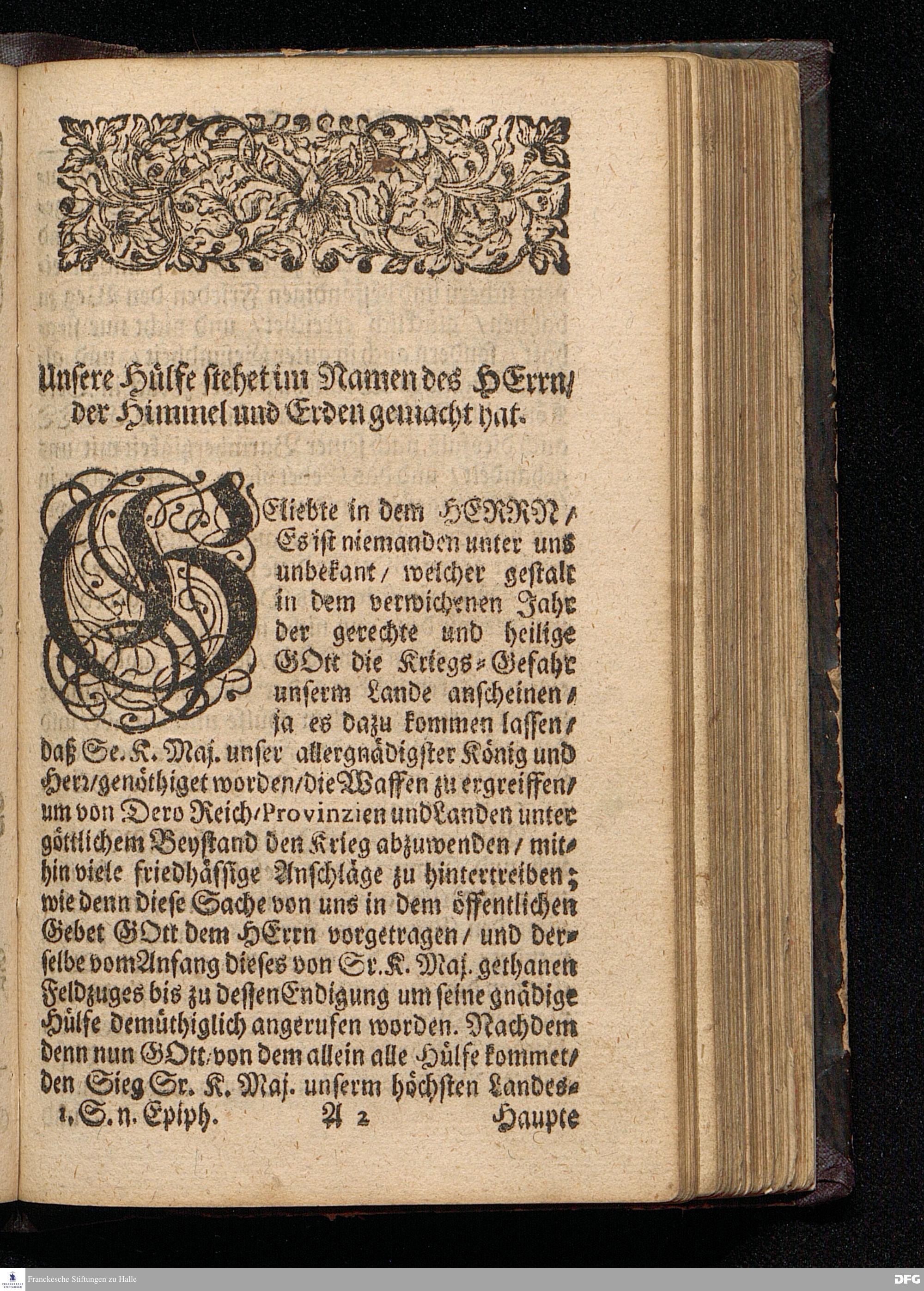 Der Sieg des Glaubens / Am Isten Sonntag nach Epiphanias MDCCXVI. An welchem / auf höchste Königliche Verordnung / das Danck=Fest wegen des in Pommern glücklich geendeten Feld=Zuges gefeyret worden / Aus Psalm.XX. v.6--10. In der St.Ulrichs=Kirche in Halle vorgestellet von August Hermann Francken / S.Theol.Prof.& Past.zu S.Ulrich / und des Gymnasii Scholarcha. HALLE / Gedruckt und zu finden im Wäysen=Hause / 1716.