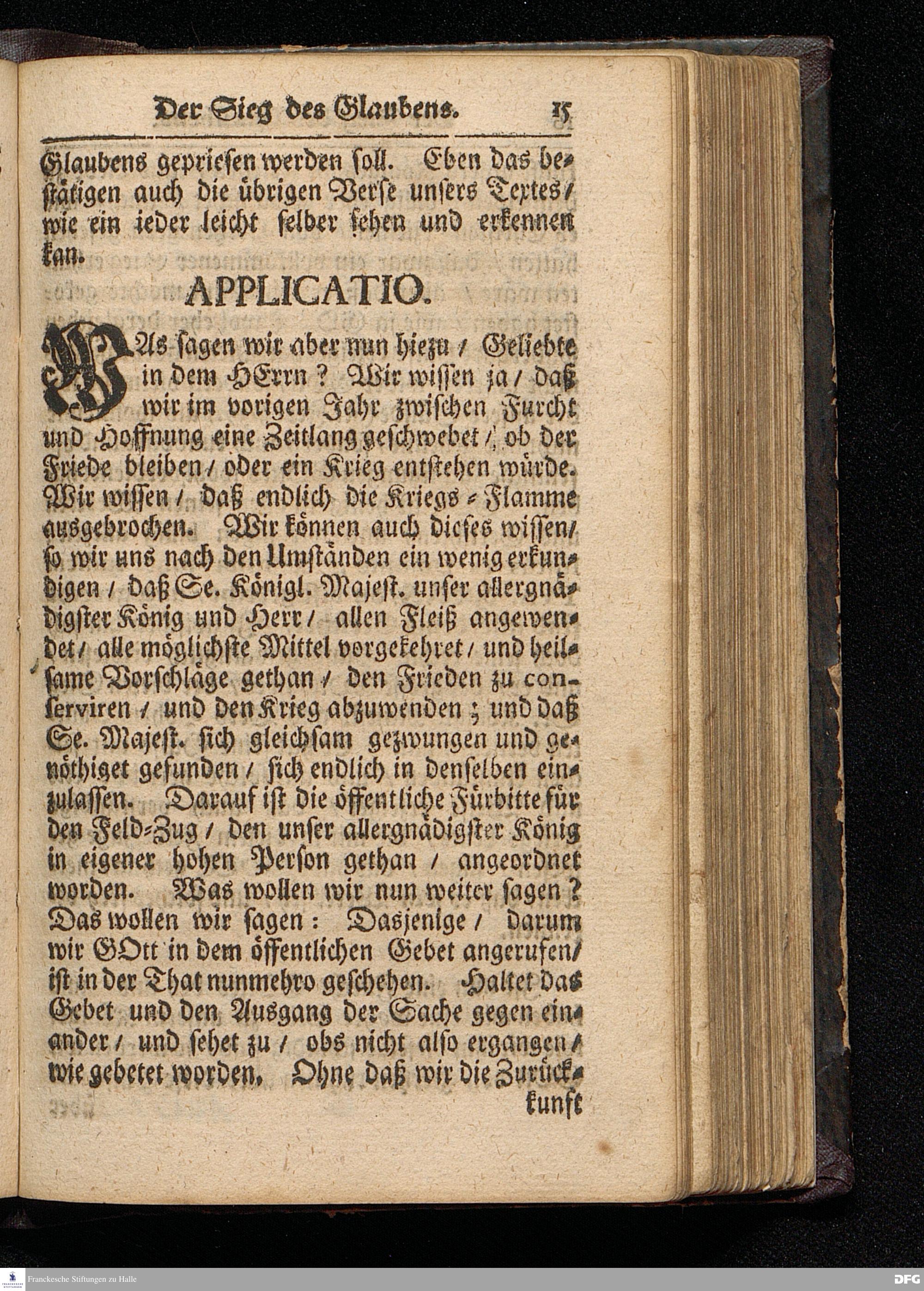 Der Sieg des Glaubens / Am Isten Sonntag nach Epiphanias MDCCXVI. An welchem / auf höchste Königliche Verordnung / das Danck=Fest wegen des in Pommern glücklich geendeten Feld=Zuges gefeyret worden / Aus Psalm.XX. v.6--10. In der St.Ulrichs=Kirche in Halle vorgestellet von August Hermann Francken / S.Theol.Prof.& Past.zu S.Ulrich / und des Gymnasii Scholarcha. HALLE / Gedruckt und zu finden im Wäysen=Hause / 1716.