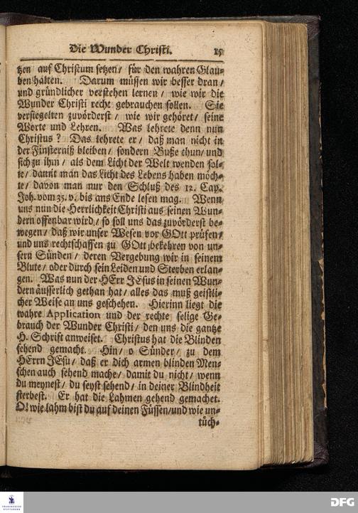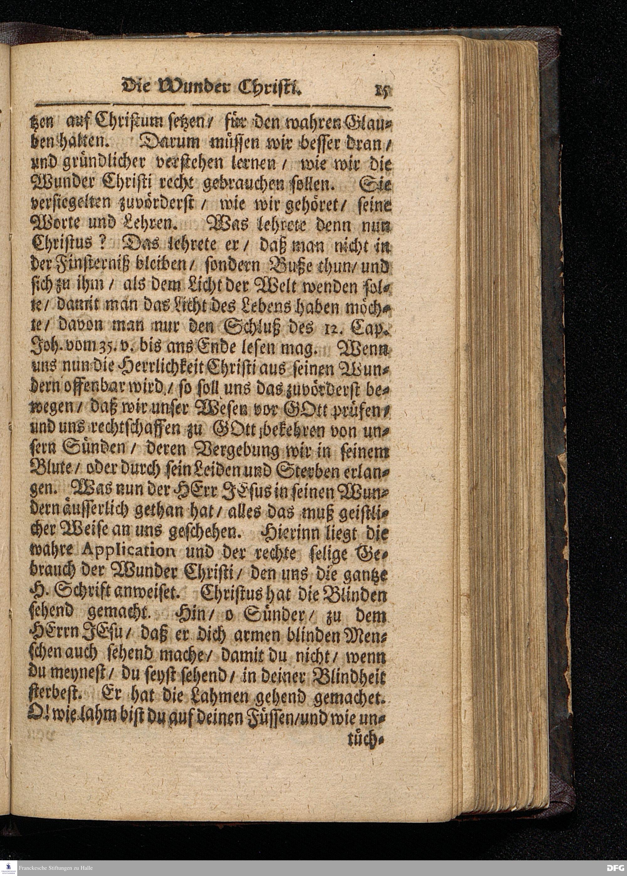 Die Wunder Christi / So wol Nach ihrer eigentlichen Beschaffenheit / als auch nach ihrem rechten Gebrauch / Aus dem Evangelischen Text Joh.II, 1--11. Am IIdern Sonntag nach Epiphanias MDCCXVI. Und dem darauf diesmal verlegten Crönungs=Fest / In der St.Ulrichs=Kirche in Halle vorgestellet von August Herman[n] Francken / S.Theolog.Prof.& Past.zu S.Ulrich / und des Gymnasii Scholarcha. HALLE / Gedruckt und zu finden im Wäysen=Hause. Anno 1716.