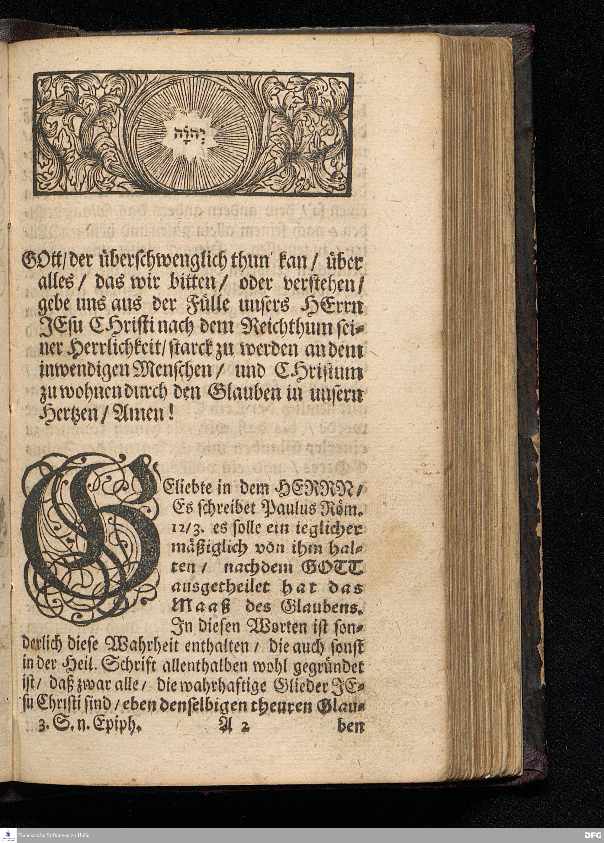 Das Unterschiedene Maaß des Glaubens / Aus dem Evangelischen Text Matth.VIII, 1--13. Am IIIten Sonntage nach Epiphanias MDCCXVI. In der St.Ulrichs=Kirchen in Halle vorgestellet von August Hermann Francken / S.Theol.Prof.& Past.zu S.Ulrich / und des Gymnasii Scholarcha. HALLE / Gedruckt und zu finden im Wäysen=Hause / 1716.