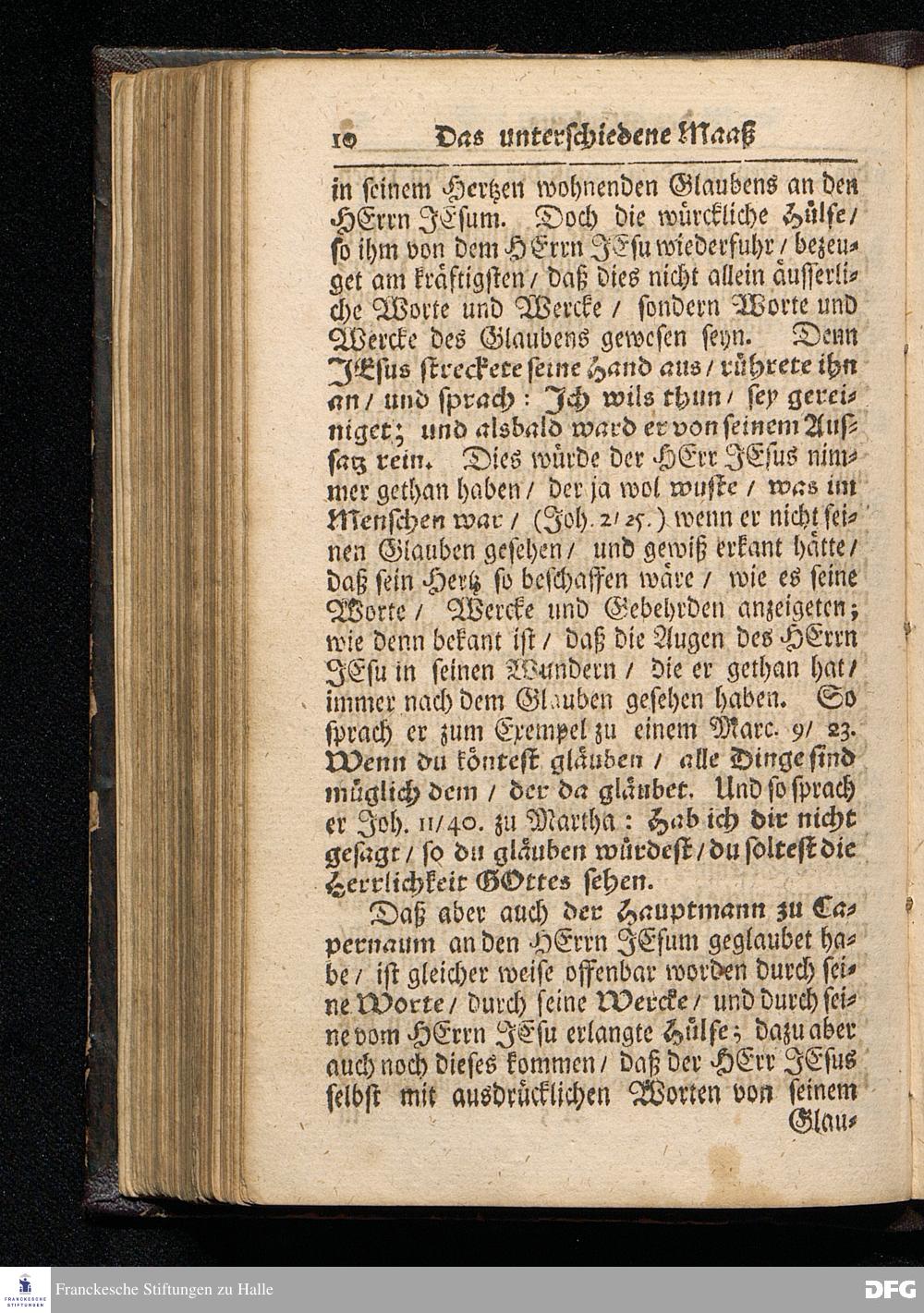 Das Unterschiedene Maaß des Glaubens / Aus dem Evangelischen Text Matth.VIII, 1--13. Am IIIten Sonntage nach Epiphanias MDCCXVI. In der St.Ulrichs=Kirchen in Halle vorgestellet von August Hermann Francken / S.Theol.Prof.& Past.zu S.Ulrich / und des Gymnasii Scholarcha. HALLE / Gedruckt und zu finden im Wäysen=Hause / 1716.