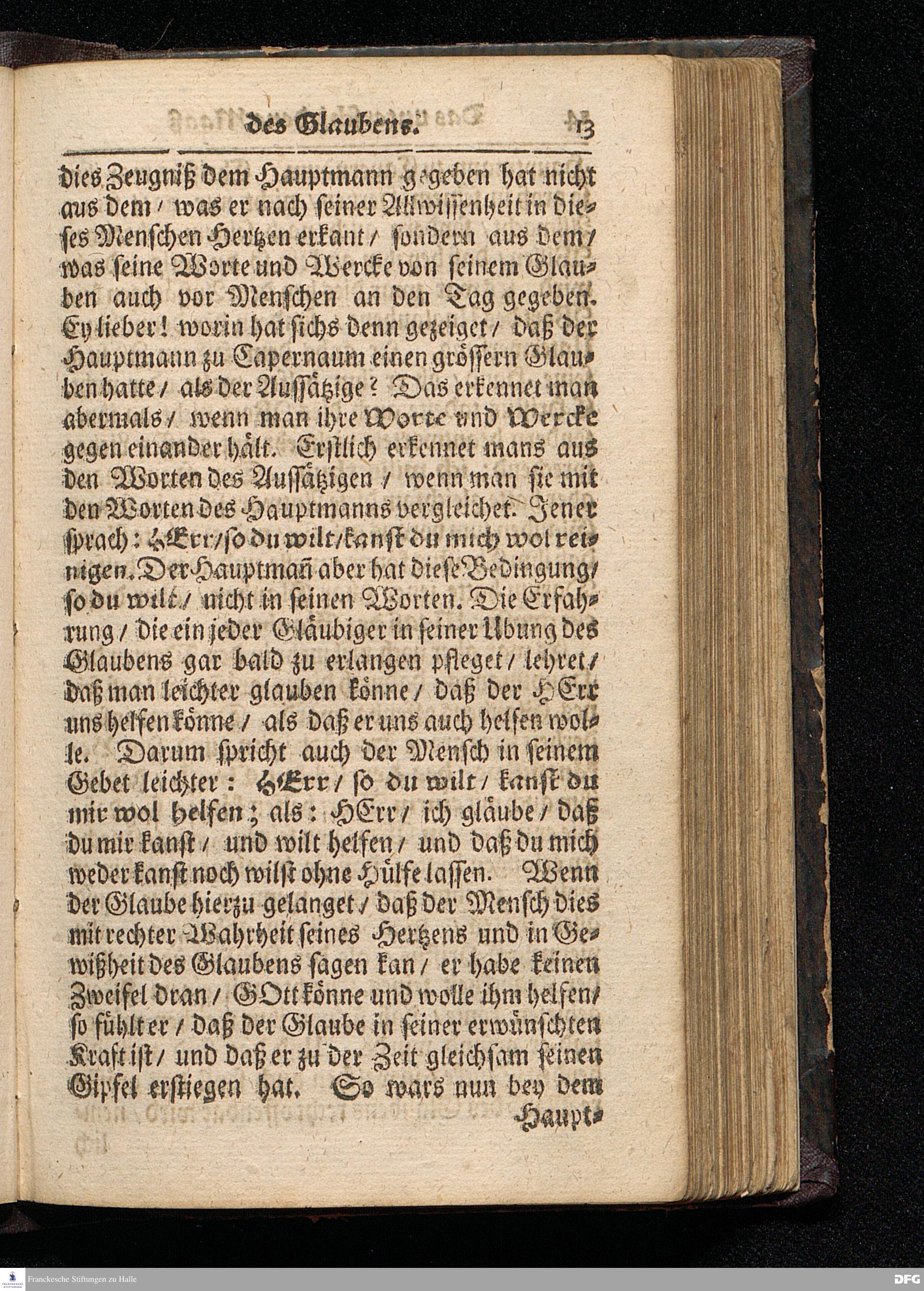 Das Unterschiedene Maaß des Glaubens / Aus dem Evangelischen Text Matth.VIII, 1--13. Am IIIten Sonntage nach Epiphanias MDCCXVI. In der St.Ulrichs=Kirchen in Halle vorgestellet von August Hermann Francken / S.Theol.Prof.& Past.zu S.Ulrich / und des Gymnasii Scholarcha. HALLE / Gedruckt und zu finden im Wäysen=Hause / 1716.