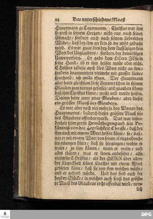 Das Unterschiedene Maaß des Glaubens / Aus dem Evangelischen Text Matth.VIII, 1--13. Am IIIten Sonntage nach Epiphanias MDCCXVI. In der St.Ulrichs=Kirchen in Halle vorgestellet von August Hermann Francken / S.Theol.Prof.& Past.zu S.Ulrich / und des Gymnasii Scholarcha. HALLE / Gedruckt und zu finden im Wäysen=Hause / 1716.