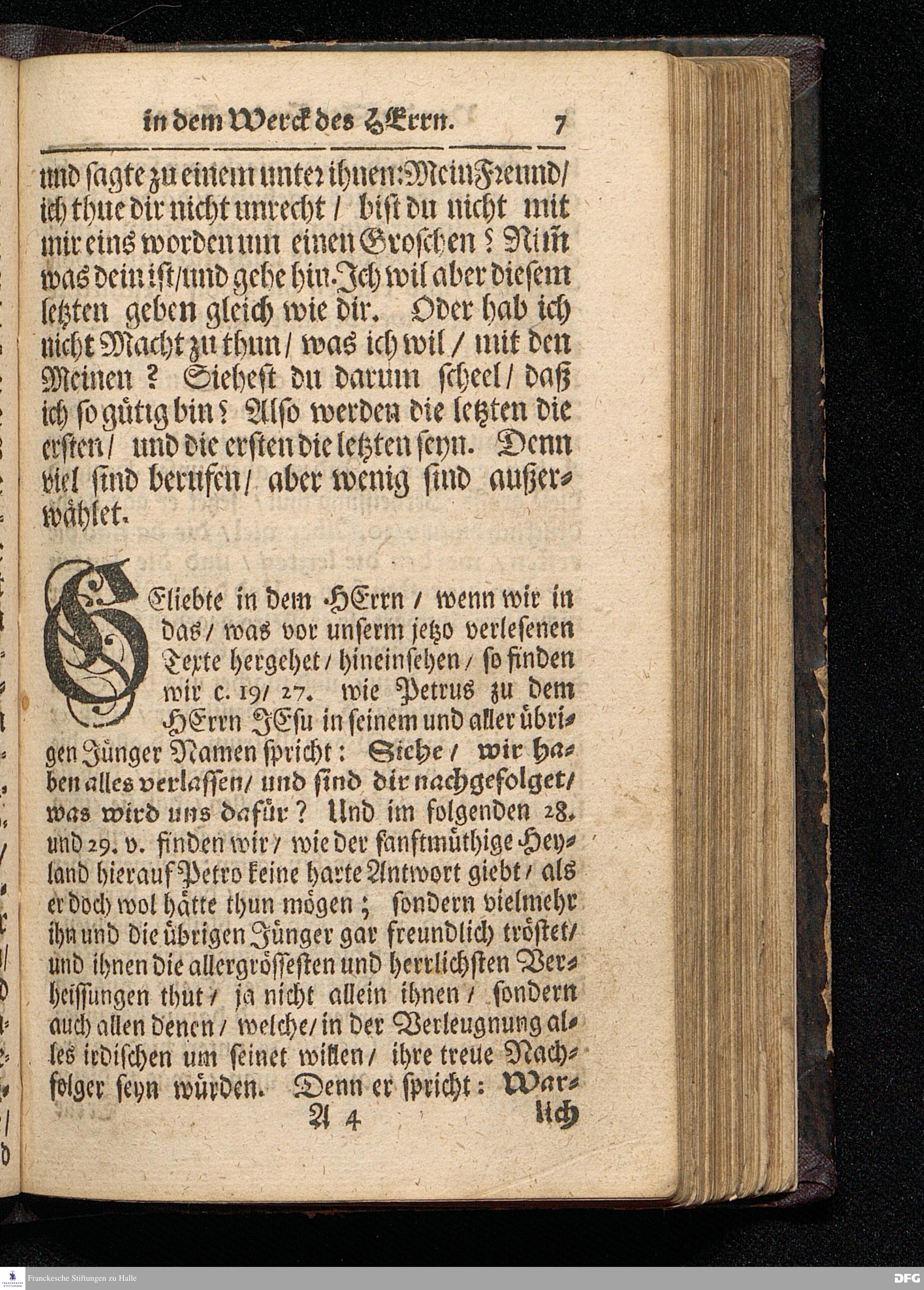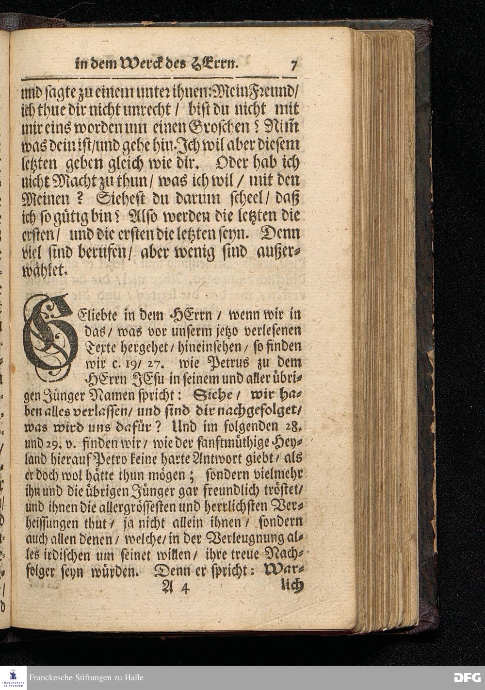 GRADUS FIDELITATIS in opere Domini, d.i. Die Stuffen der Treue In dem Werck des HErrn / Auf Septuagesima MDCCXVI. Aus Matth.XX, 1--16. In der St.Ulrichs=Kirchen in Halle vorgestellet von August Hermann Francken / S.Theol.Prof.& Past.zu S.Ulrich / und des Gymnasii Scholarcha. HALLE / Gedruckt und zu finden im Wäysen=Hause. 1716.