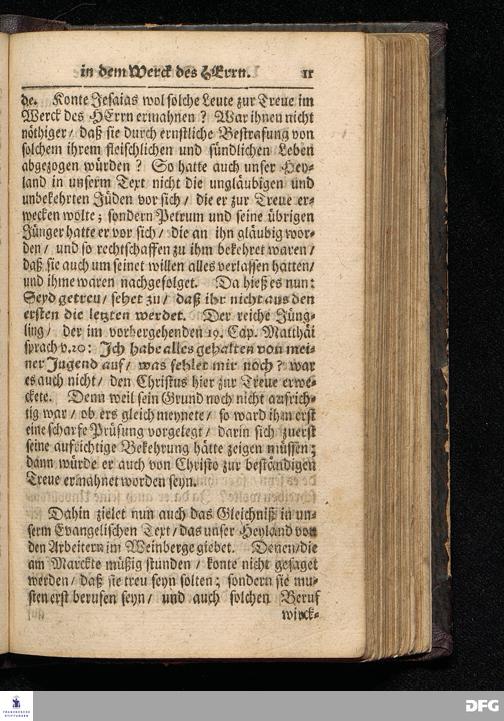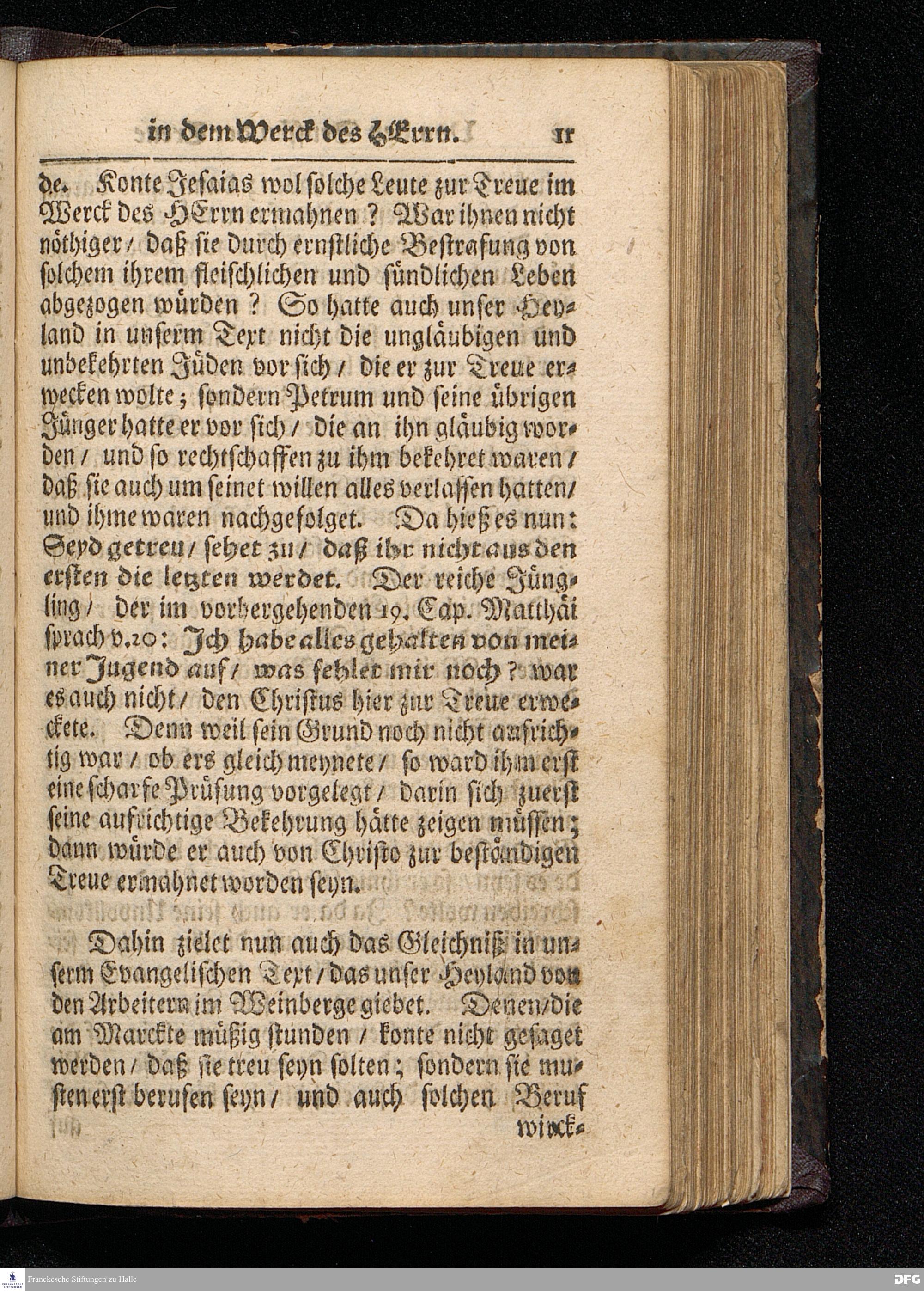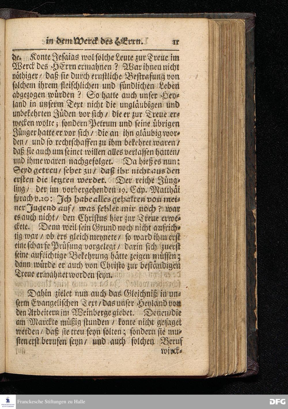 GRADUS FIDELITATIS in opere Domini, d.i. Die Stuffen der Treue In dem Werck des HErrn / Auf Septuagesima MDCCXVI. Aus Matth.XX, 1--16. In der St.Ulrichs=Kirchen in Halle vorgestellet von August Hermann Francken / S.Theol.Prof.& Past.zu S.Ulrich / und des Gymnasii Scholarcha. HALLE / Gedruckt und zu finden im Wäysen=Hause. 1716.
