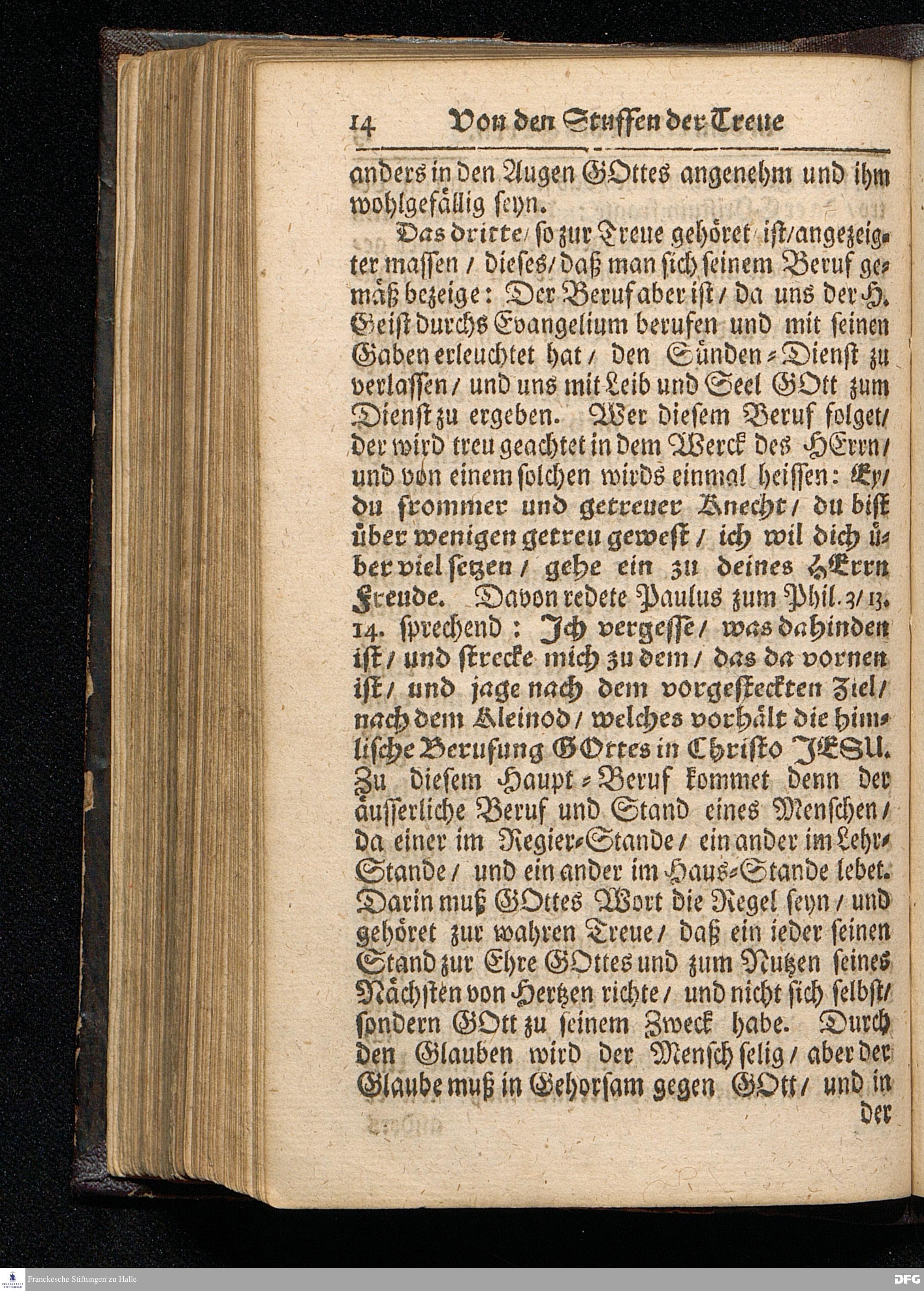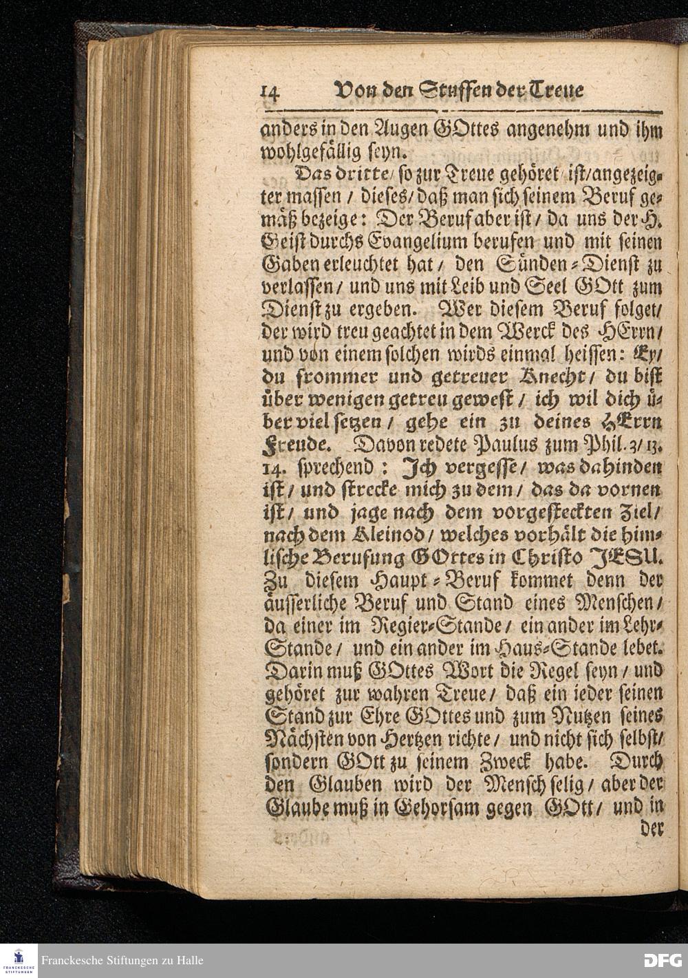 GRADUS FIDELITATIS in opere Domini, d.i. Die Stuffen der Treue In dem Werck des HErrn / Auf Septuagesima MDCCXVI. Aus Matth.XX, 1--16. In der St.Ulrichs=Kirchen in Halle vorgestellet von August Hermann Francken / S.Theol.Prof.& Past.zu S.Ulrich / und des Gymnasii Scholarcha. HALLE / Gedruckt und zu finden im Wäysen=Hause. 1716.