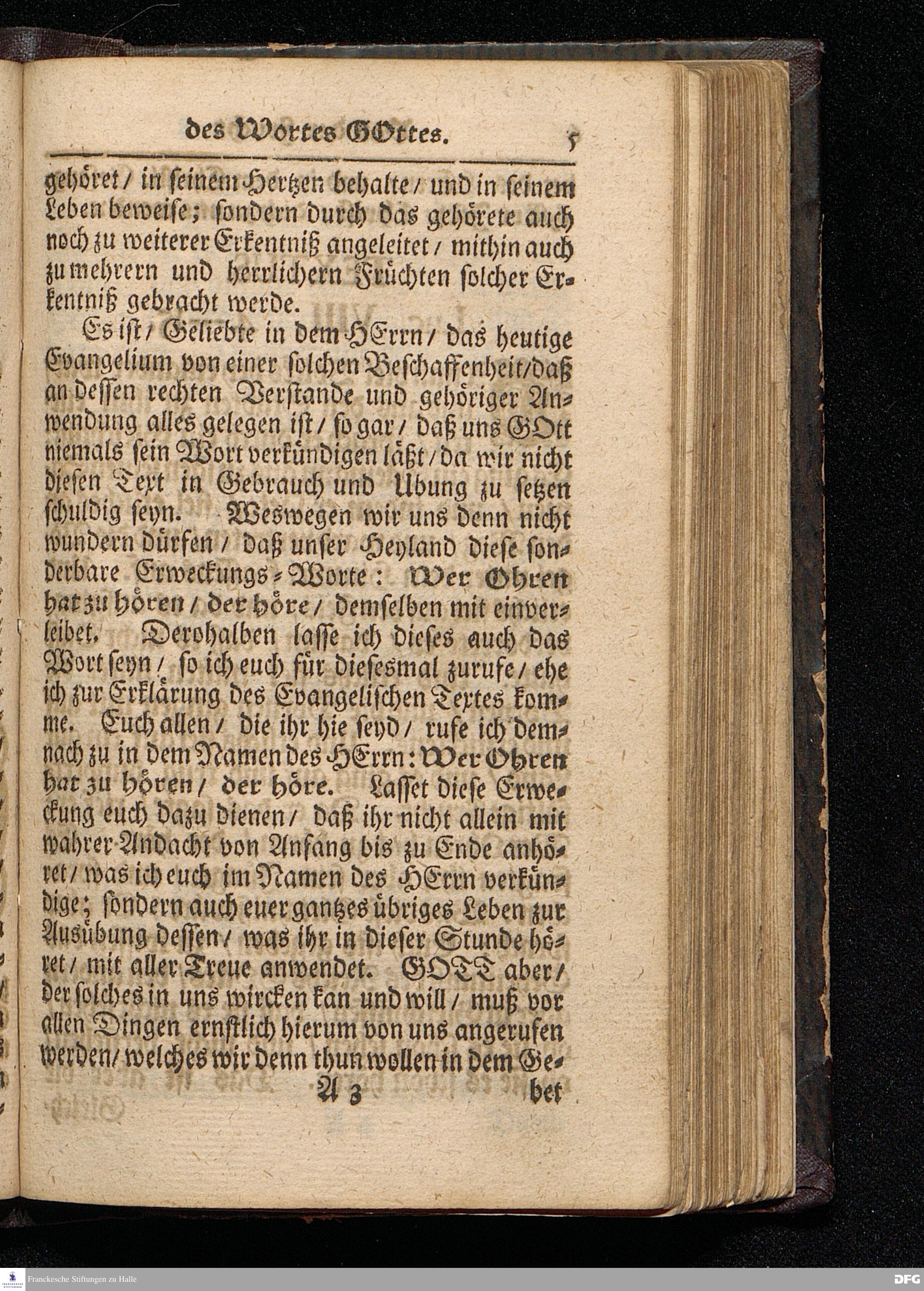 Die Frucht des Wortes Gottes / Auf Sexagesima MDCCXVI. Aus Luc.VIII,4--15. In der St.Ulrichs=Kirchen in Halle / vorgestellet von August Hermann Francken / S.Theol.Prof.& Past.zu S.Ulrich / und des Gymnasii Scholarcha. HALLE / Gedruckt und zu finden im Wäysen=Hause / 1716