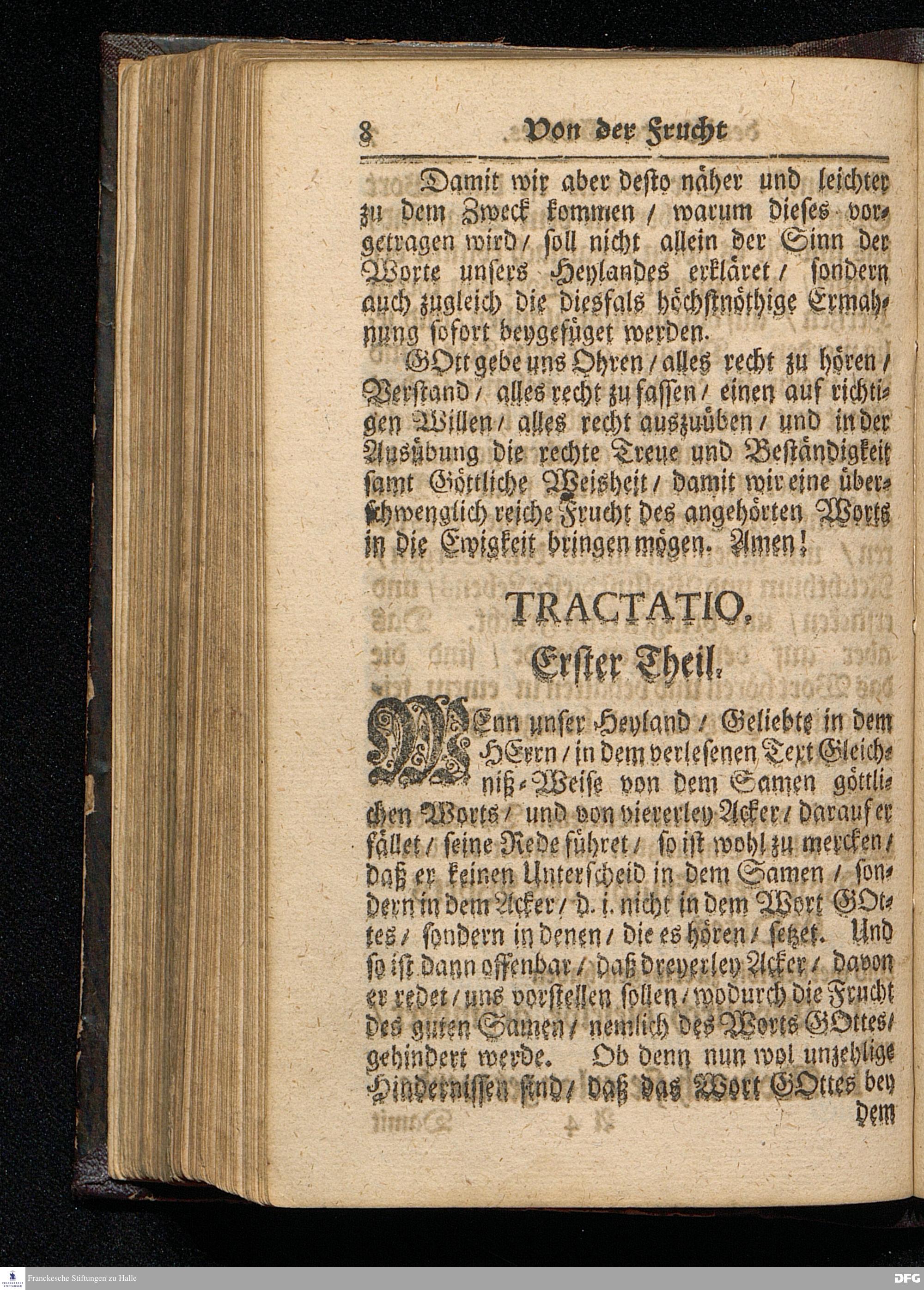 Die Frucht des Wortes Gottes / Auf Sexagesima MDCCXVI. Aus Luc.VIII,4--15. In der St.Ulrichs=Kirchen in Halle / vorgestellet von August Hermann Francken / S.Theol.Prof.& Past.zu S.Ulrich / und des Gymnasii Scholarcha. HALLE / Gedruckt und zu finden im Wäysen=Hause / 1716