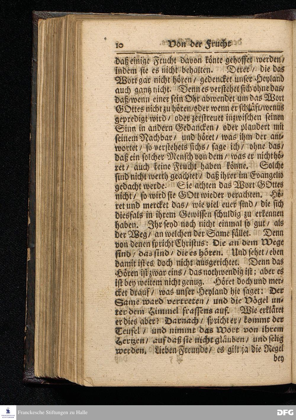 Die Frucht des Wortes Gottes / Auf Sexagesima MDCCXVI. Aus Luc.VIII,4--15. In der St.Ulrichs=Kirchen in Halle / vorgestellet von August Hermann Francken / S.Theol.Prof.& Past.zu S.Ulrich / und des Gymnasii Scholarcha. HALLE / Gedruckt und zu finden im Wäysen=Hause / 1716