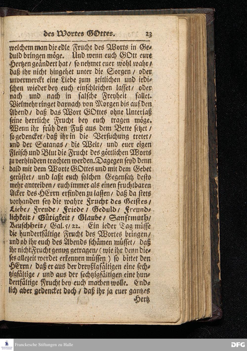 Die Frucht des Wortes Gottes / Auf Sexagesima MDCCXVI. Aus Luc.VIII,4--15. In der St.Ulrichs=Kirchen in Halle / vorgestellet von August Hermann Francken / S.Theol.Prof.& Past.zu S.Ulrich / und des Gymnasii Scholarcha. HALLE / Gedruckt und zu finden im Wäysen=Hause / 1716