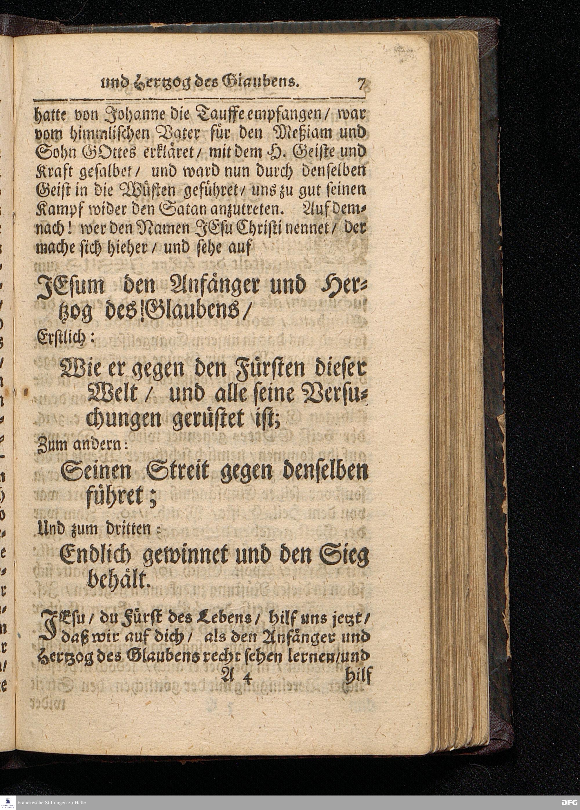 JEsus Als der Anfänger und Hertzog des Glaubens / Auf Invocavit MDCCXVI. Aus Matth.IV, 1--11. In der St.Ulrichs=Kirchen in Halle / vorgestellet von August Hermann Francken / S.Theol.Prof.& Past.zu S.Ulrich / und des Gymnasii Scholarcha. HALLE / Gedruckt und zu finden im Wäysen=Hause / 1716.