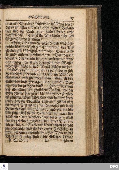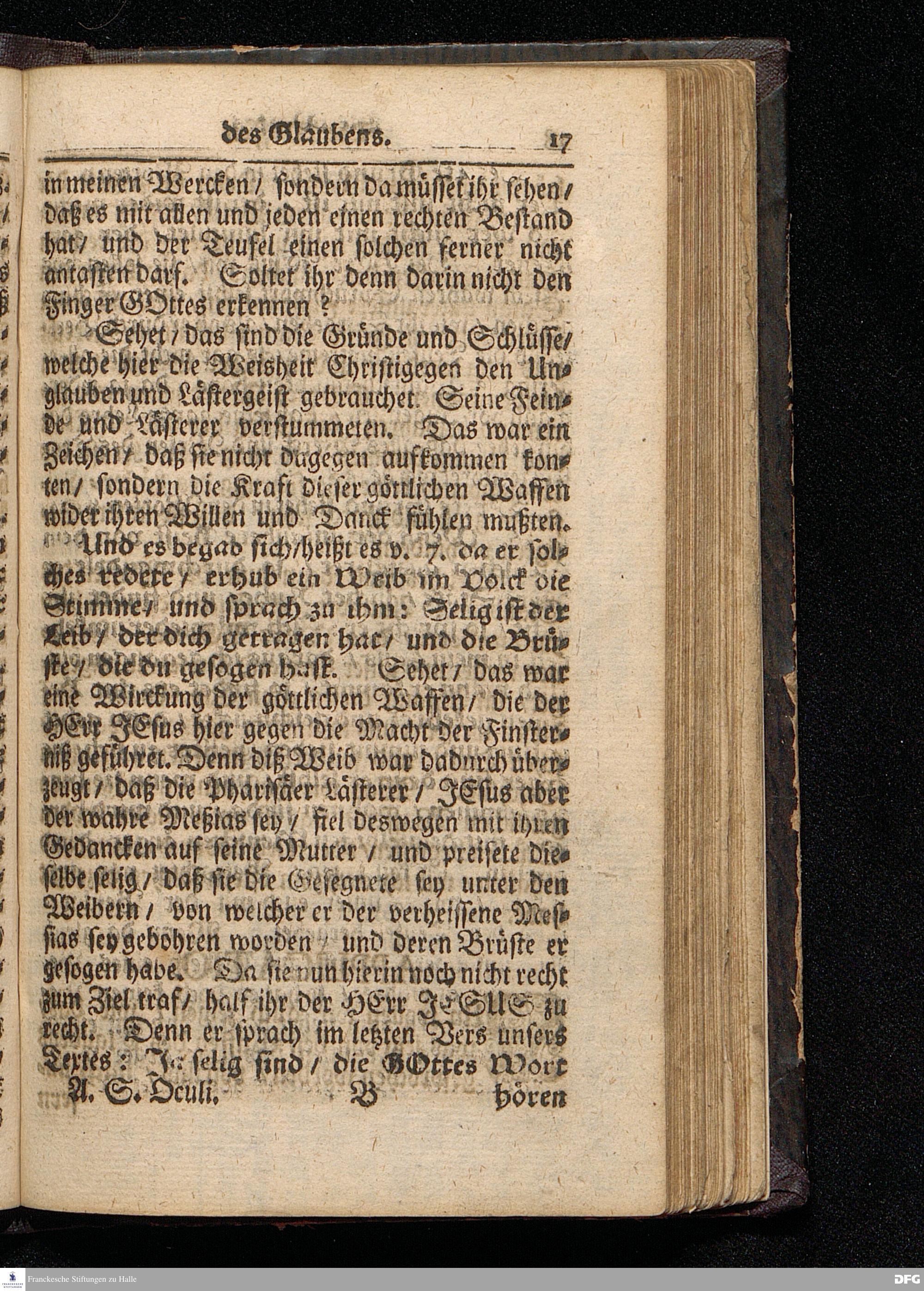 Die Waffen des Glaubens / Auf Oculi MDCCXVI. Aus Luc.XI, 14--28. In der St.Ulrichs=Kirchen in Halle vorgestellet von August Hermann Francken / S.Theol.Prof.& Past.zu S.Ulrich / und des Gymnasii Scholarcha. HALLE / Gedruckt und zu finden im Wäysen=Hause / 1716.