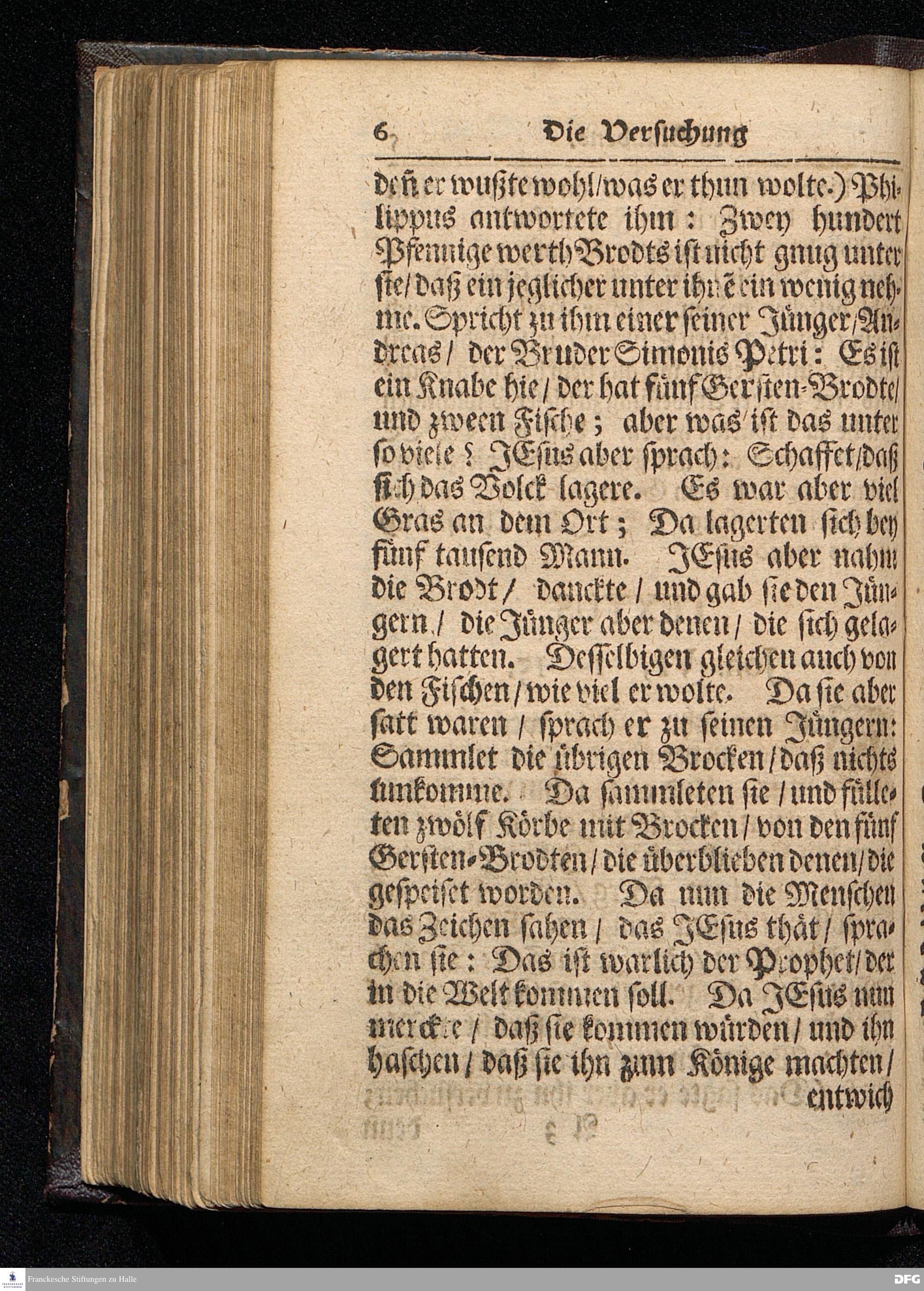 Die Versuchung des Glaubens / Auf Lætare MDCCXVI. Aus Joh.VI, 1--15. In der St.Ulrichs=Kirchen in Halle / vorgestellet von August Hermann Francken / S.Theol.Prof.& Past.zu S.Ulrich / und des Gymansii Scholarcha. HALLE / Gedruckt und zu finden im Wäysen=Hause / 1716.