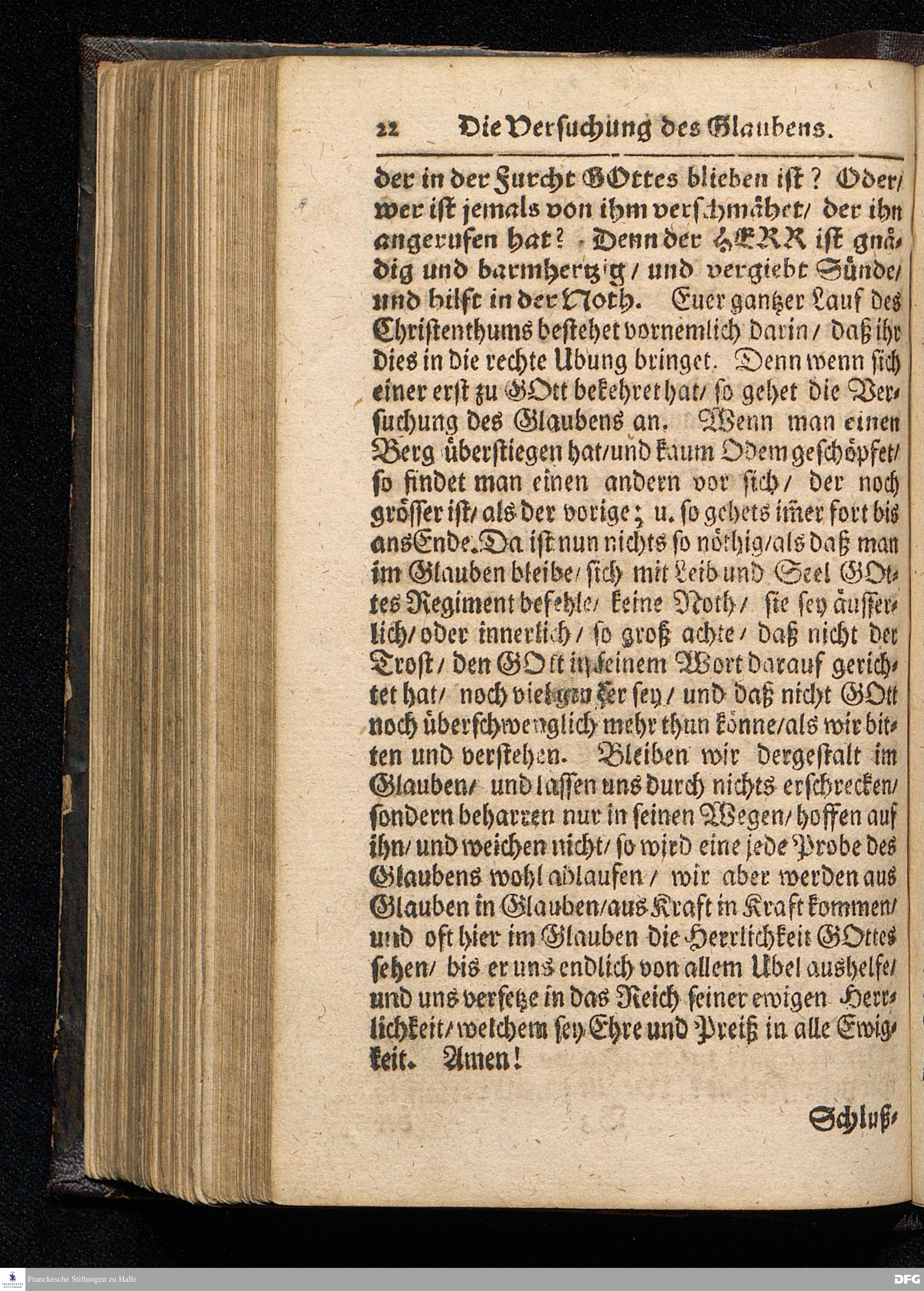 Die Versuchung des Glaubens / Auf Lætare MDCCXVI. Aus Joh.VI, 1--15. In der St.Ulrichs=Kirchen in Halle / vorgestellet von August Hermann Francken / S.Theol.Prof.& Past.zu S.Ulrich / und des Gymansii Scholarcha. HALLE / Gedruckt und zu finden im Wäysen=Hause / 1716.