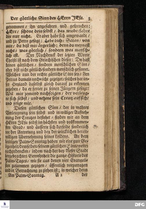 Der Göttliche Sinn des HErrn JEsu / Wie derselbe vor der Antretung seines Leidens aus der Historia des Palm=Tages zu erkennen ist / Auf Palmarum MDCCXVI. In der St.Ulrichs=Kirchen in Halle vorgestellet von August Hermann Francken / S.Theol.Prof.& Past.zu S.Ulrich / und des Gymnasii Scholarcha. HALLE / Gedruckt und zu finden im Wäysen=Hause. 1716.