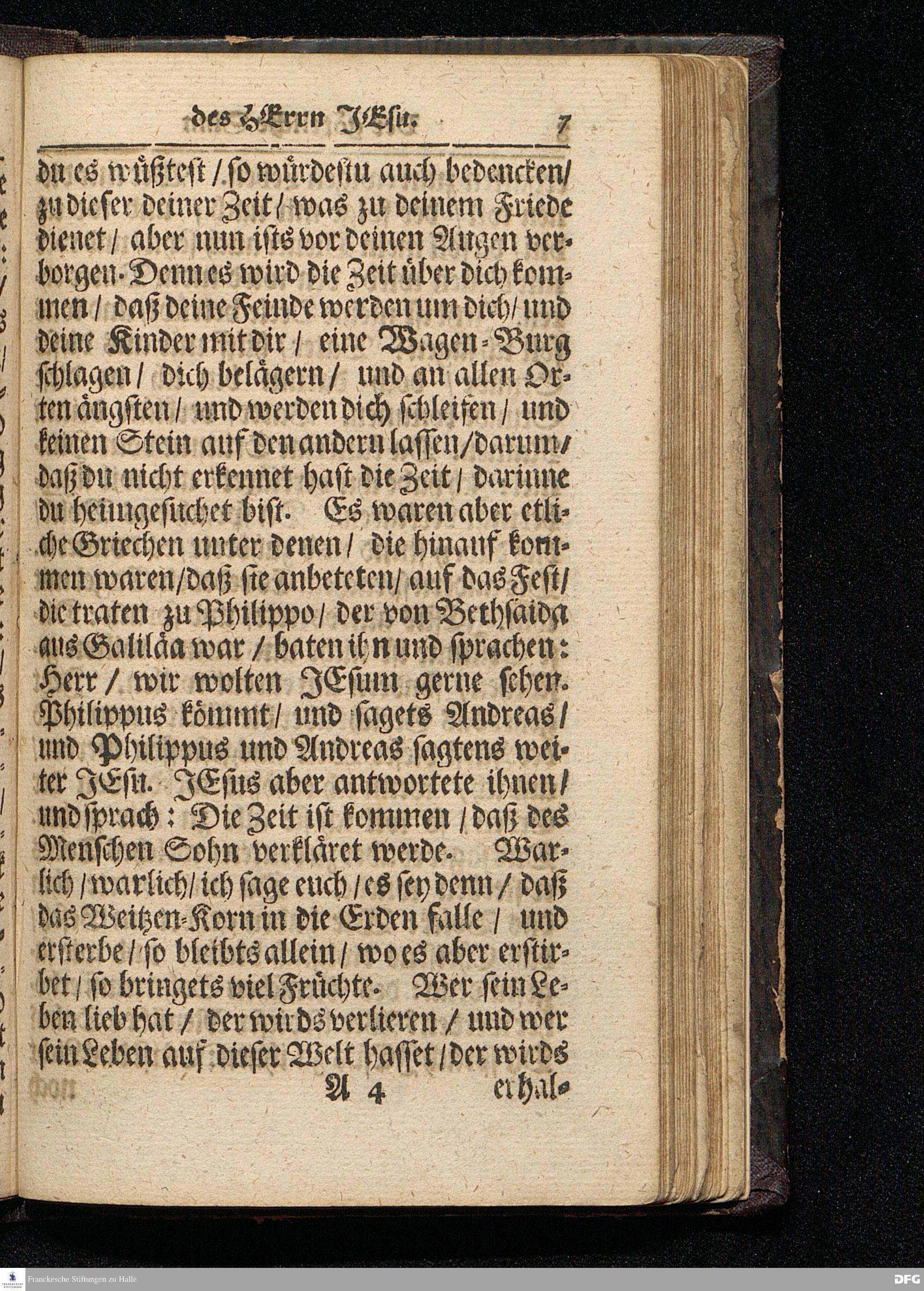 Der Göttliche Sinn des HErrn JEsu / Wie derselbe vor der Antretung seines Leidens aus der Historia des Palm=Tages zu erkennen ist / Auf Palmarum MDCCXVI. In der St.Ulrichs=Kirchen in Halle vorgestellet von August Hermann Francken / S.Theol.Prof.& Past.zu S.Ulrich / und des Gymnasii Scholarcha. HALLE / Gedruckt und zu finden im Wäysen=Hause. 1716.