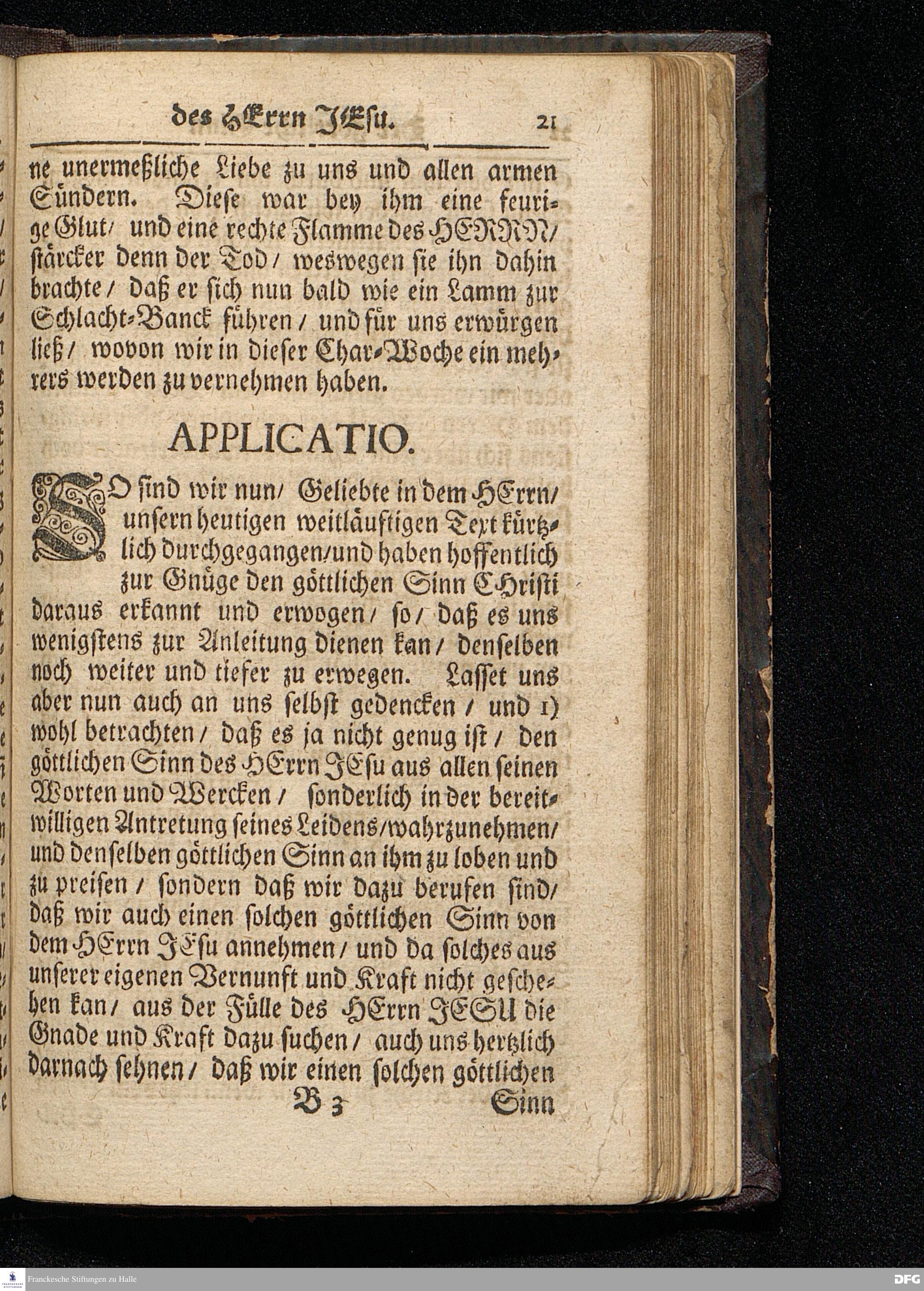Der Göttliche Sinn des HErrn JEsu / Wie derselbe vor der Antretung seines Leidens aus der Historia des Palm=Tages zu erkennen ist / Auf Palmarum MDCCXVI. In der St.Ulrichs=Kirchen in Halle vorgestellet von August Hermann Francken / S.Theol.Prof.& Past.zu S.Ulrich / und des Gymnasii Scholarcha. HALLE / Gedruckt und zu finden im Wäysen=Hause. 1716.