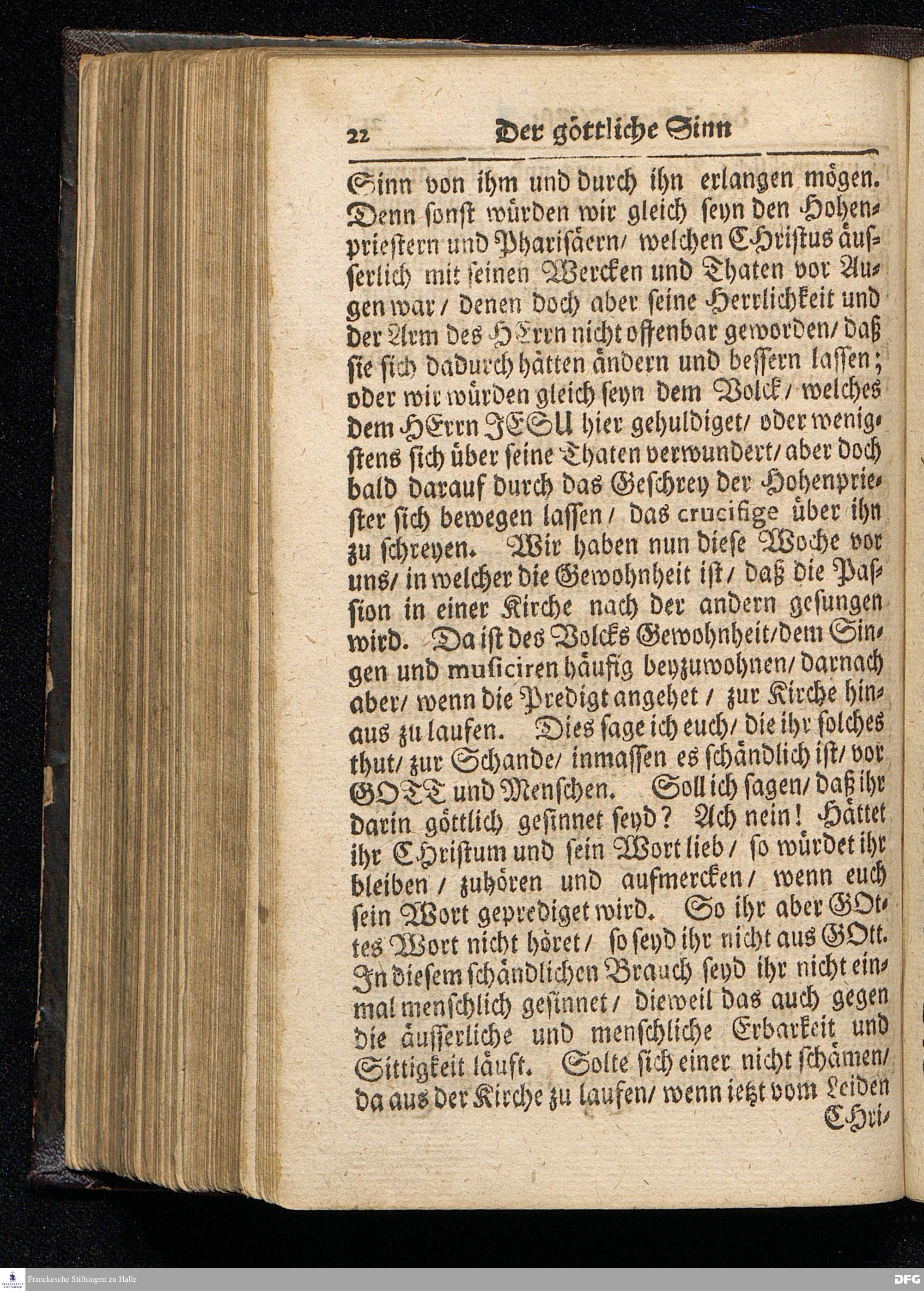 Der Göttliche Sinn des HErrn JEsu / Wie derselbe vor der Antretung seines Leidens aus der Historia des Palm=Tages zu erkennen ist / Auf Palmarum MDCCXVI. In der St.Ulrichs=Kirchen in Halle vorgestellet von August Hermann Francken / S.Theol.Prof.& Past.zu S.Ulrich / und des Gymnasii Scholarcha. HALLE / Gedruckt und zu finden im Wäysen=Hause. 1716.