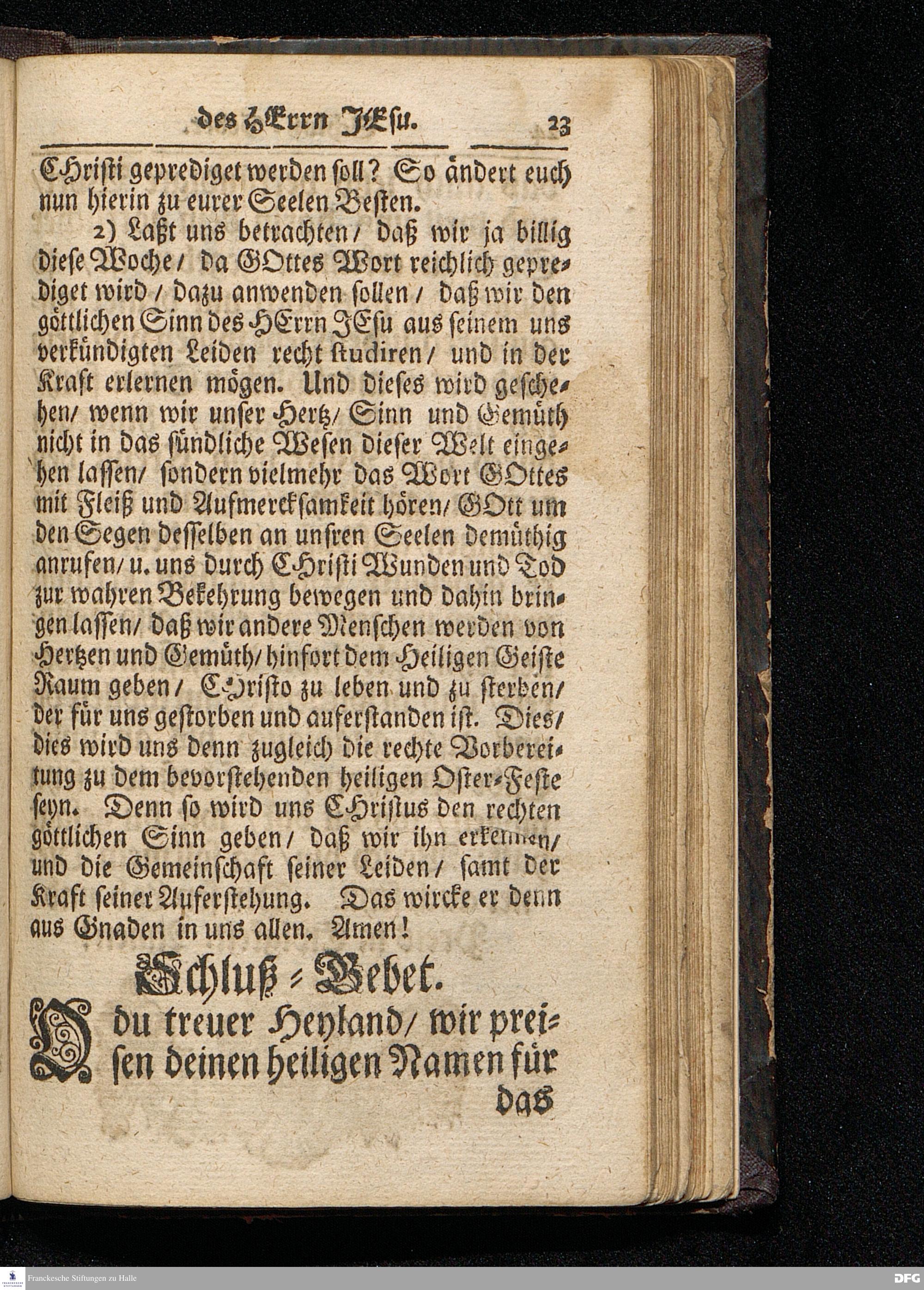 Der Göttliche Sinn des HErrn JEsu / Wie derselbe vor der Antretung seines Leidens aus der Historia des Palm=Tages zu erkennen ist / Auf Palmarum MDCCXVI. In der St.Ulrichs=Kirchen in Halle vorgestellet von August Hermann Francken / S.Theol.Prof.& Past.zu S.Ulrich / und des Gymnasii Scholarcha. HALLE / Gedruckt und zu finden im Wäysen=Hause. 1716.