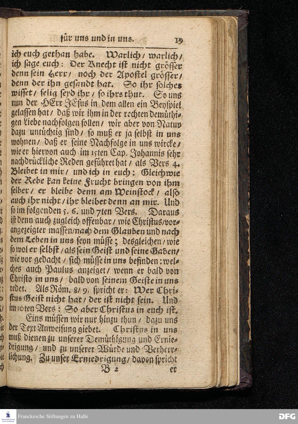 Das Gedächtniß CHristi für uns und in uns / Am Grünen Donnerstage 1716. Aus der Evangelischen Historie Von der Einsetzung des Heil.Abendmahls / und vom Fuß=Waschen CHristi / In der St.Ulrichs=Kirchen in Halle angewiesen von August Hermann Francken / S.Theol.Prof.& Past.zu S.Ulrich / und des Gymnasii Scholarcha. HALLE / Gedruckt und zu finden im Wäysen=Hause. 1716.