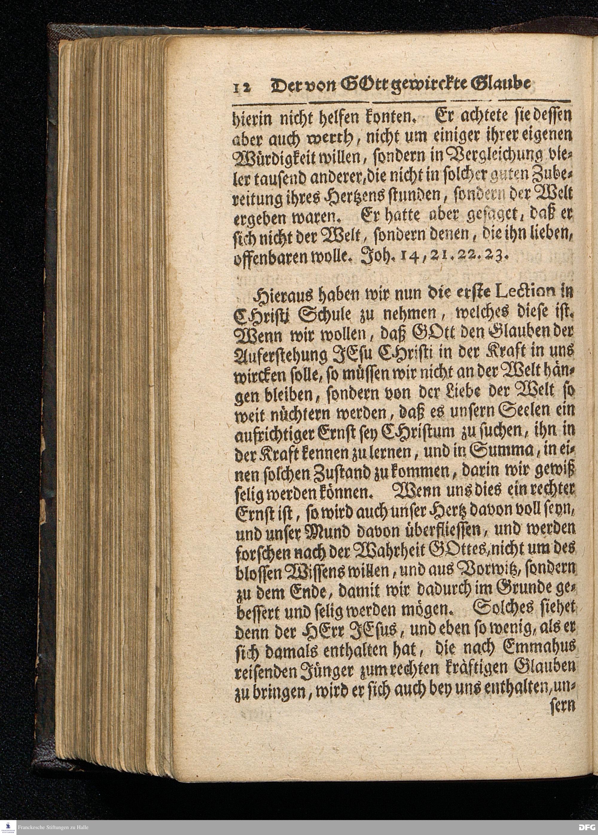 Der Von GOtt gewirckte Glaube / Der Auferstehung JEsu CHristi / Am andern Oster=Feyertage MDCCXVI. Aus dem Evangelio Luc.XXIV, 13---35. In der S.Ulrichs=Kirchen in Halle vorgestellet von August Hermann Francken / S.Theolog.Prof.& Past.zu S.Ulrich, und des Gymnasii Scholarcha. HALLE, Gedruckt und zu finden im Wäysen=Hause. Anno 1716.