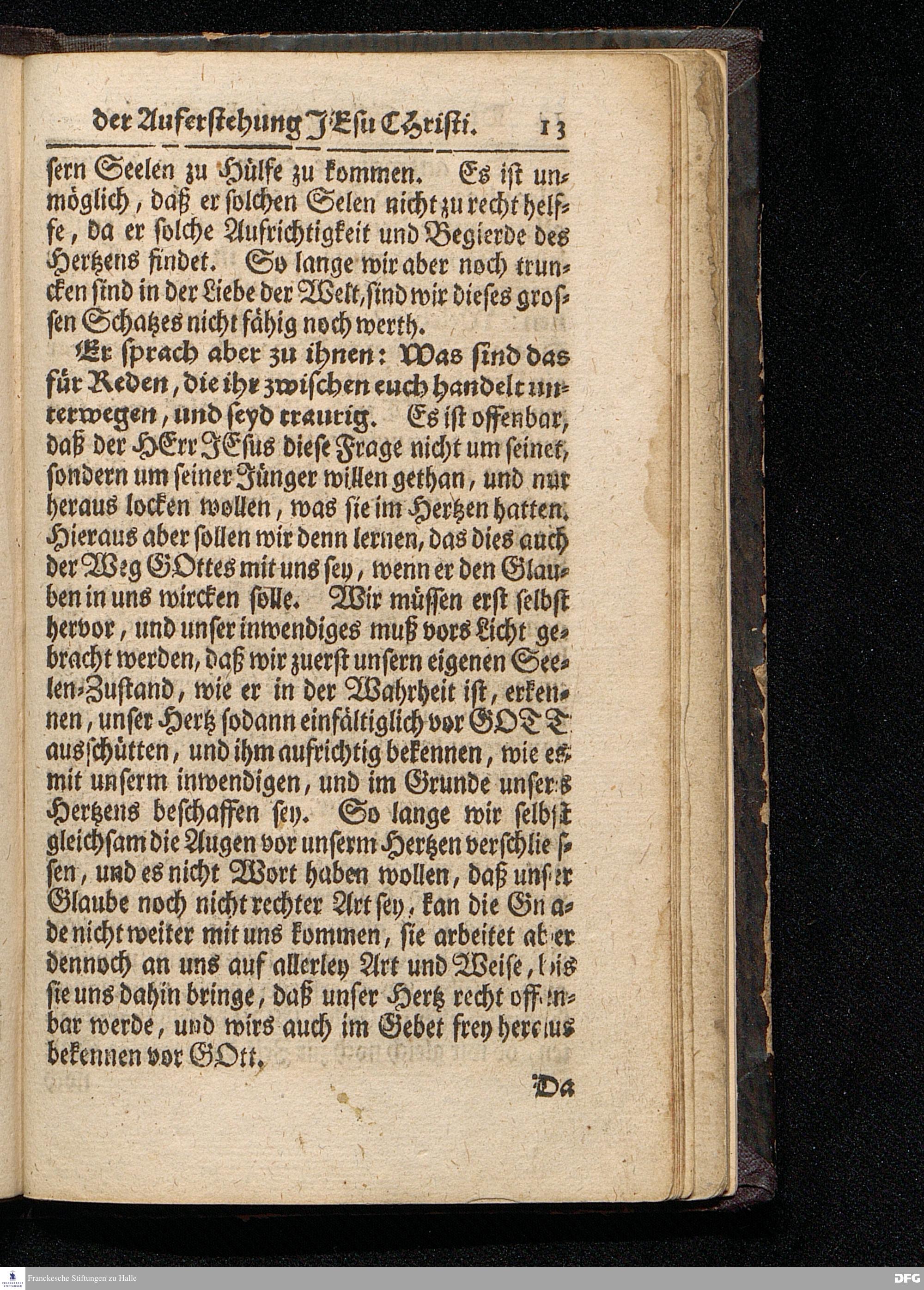 Der Von GOtt gewirckte Glaube / Der Auferstehung JEsu CHristi / Am andern Oster=Feyertage MDCCXVI. Aus dem Evangelio Luc.XXIV, 13---35. In der S.Ulrichs=Kirchen in Halle vorgestellet von August Hermann Francken / S.Theolog.Prof.& Past.zu S.Ulrich, und des Gymnasii Scholarcha. HALLE, Gedruckt und zu finden im Wäysen=Hause. Anno 1716.