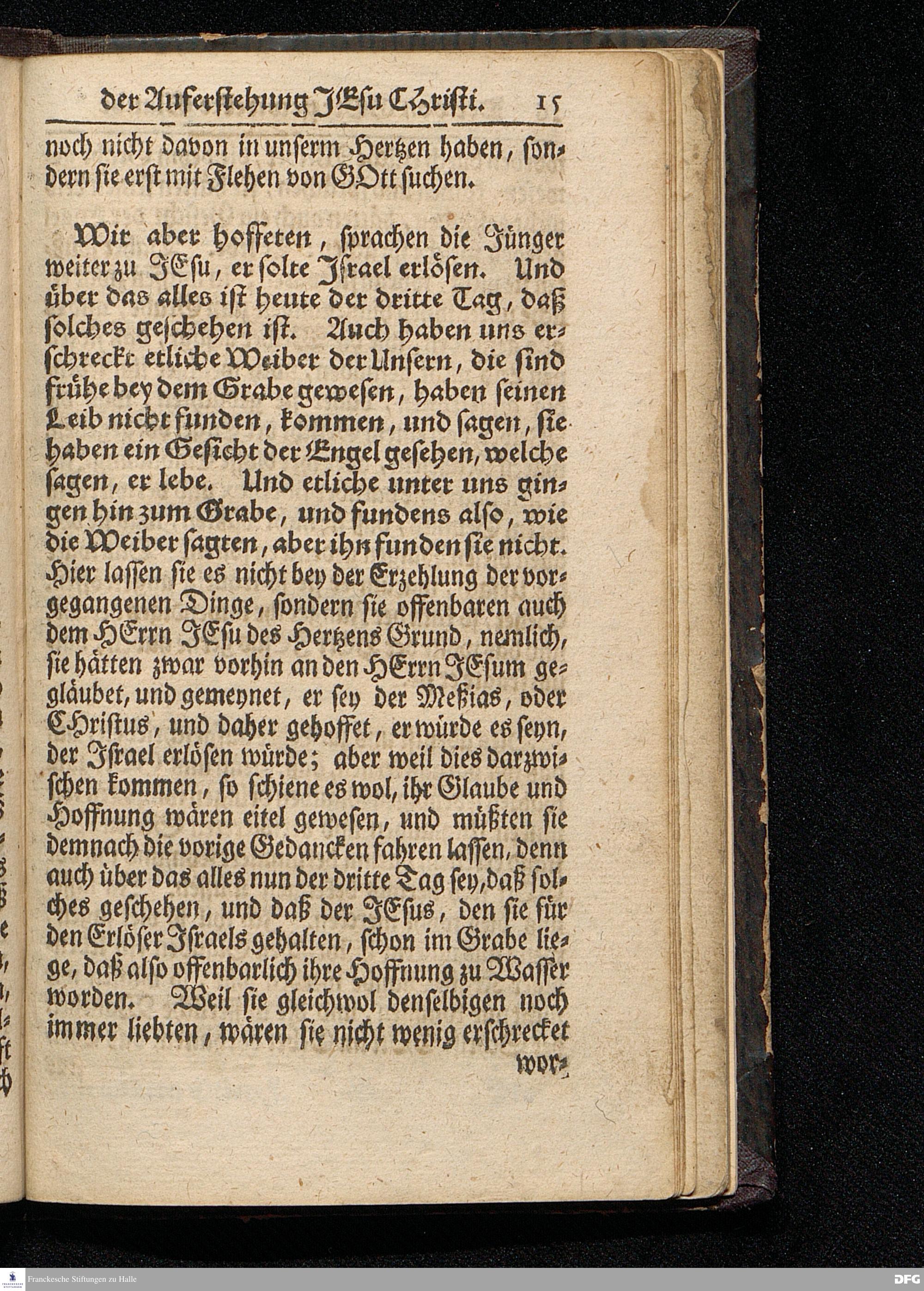 Der Von GOtt gewirckte Glaube / Der Auferstehung JEsu CHristi / Am andern Oster=Feyertage MDCCXVI. Aus dem Evangelio Luc.XXIV, 13---35. In der S.Ulrichs=Kirchen in Halle vorgestellet von August Hermann Francken / S.Theolog.Prof.& Past.zu S.Ulrich, und des Gymnasii Scholarcha. HALLE, Gedruckt und zu finden im Wäysen=Hause. Anno 1716.