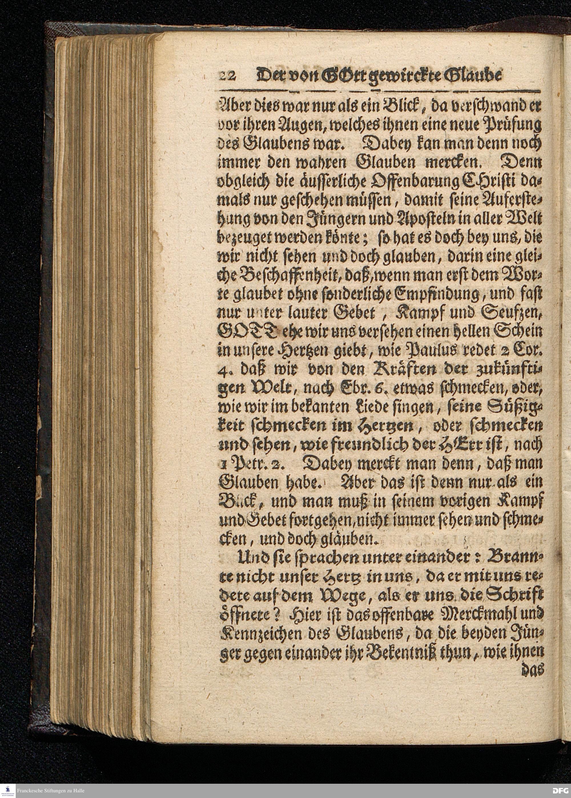 Der Von GOtt gewirckte Glaube / Der Auferstehung JEsu CHristi / Am andern Oster=Feyertage MDCCXVI. Aus dem Evangelio Luc.XXIV, 13---35. In der S.Ulrichs=Kirchen in Halle vorgestellet von August Hermann Francken / S.Theolog.Prof.& Past.zu S.Ulrich, und des Gymnasii Scholarcha. HALLE, Gedruckt und zu finden im Wäysen=Hause. Anno 1716.